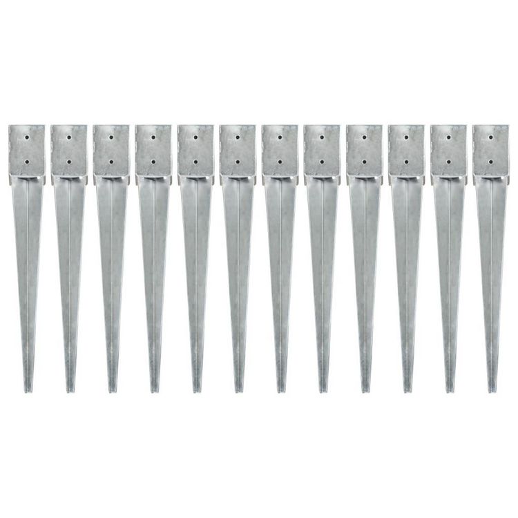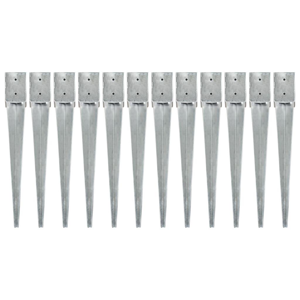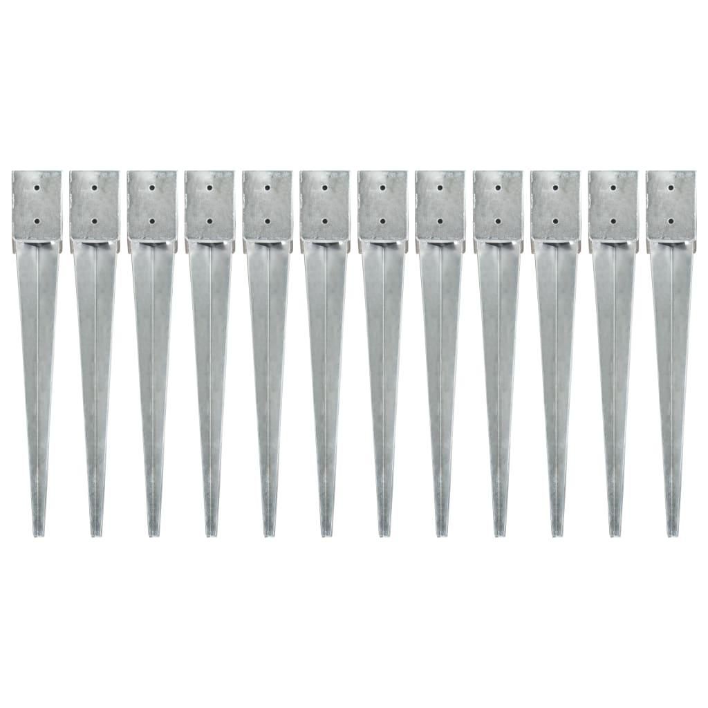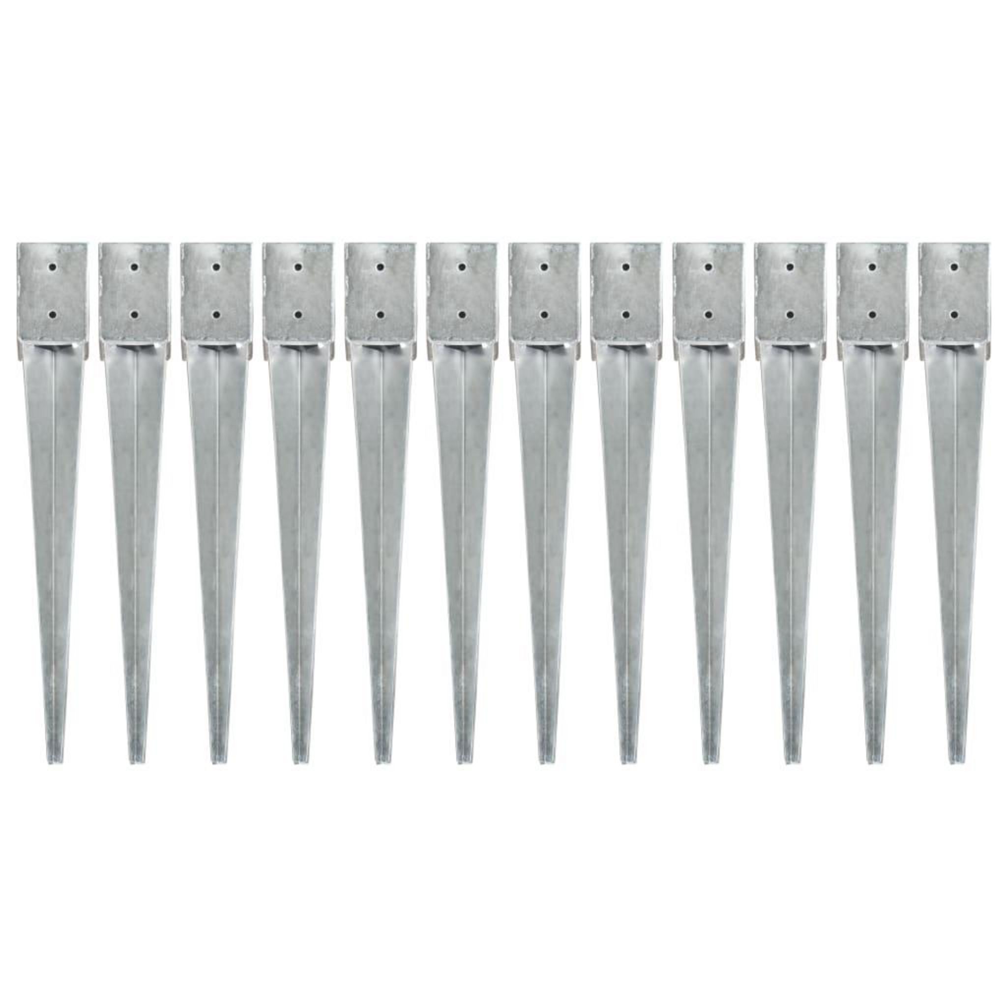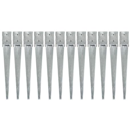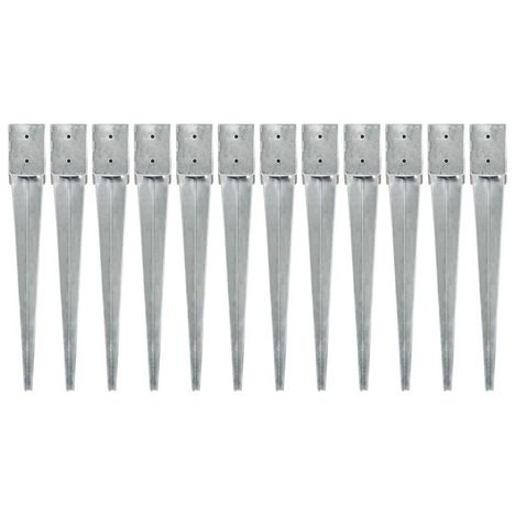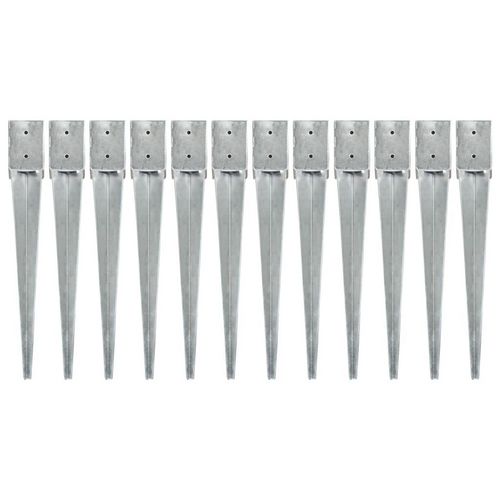 Piquets au sol 12 pcs Argente 10x10x76 cm Acier galvanise
