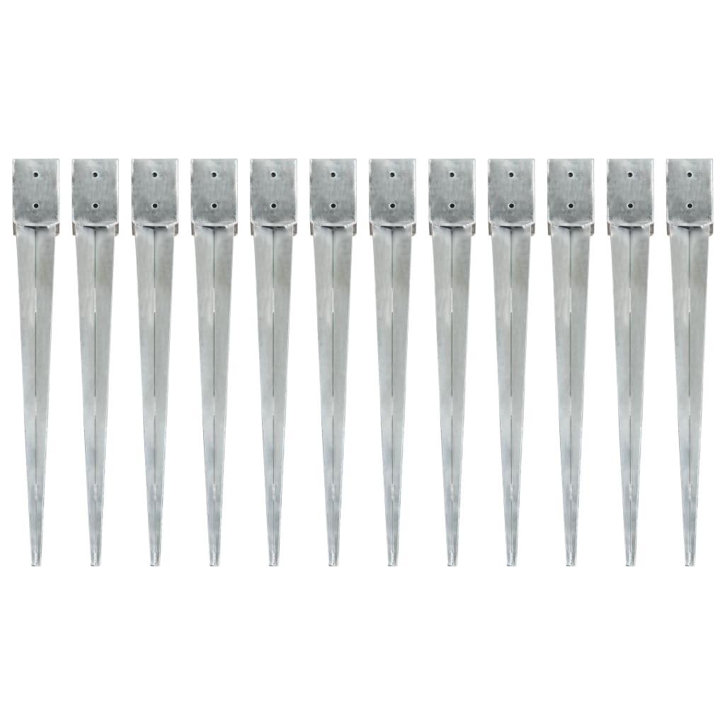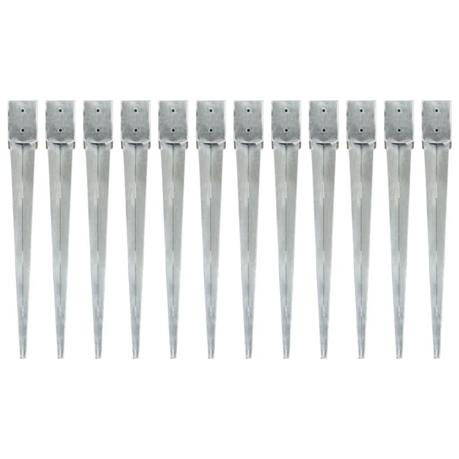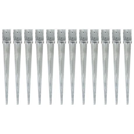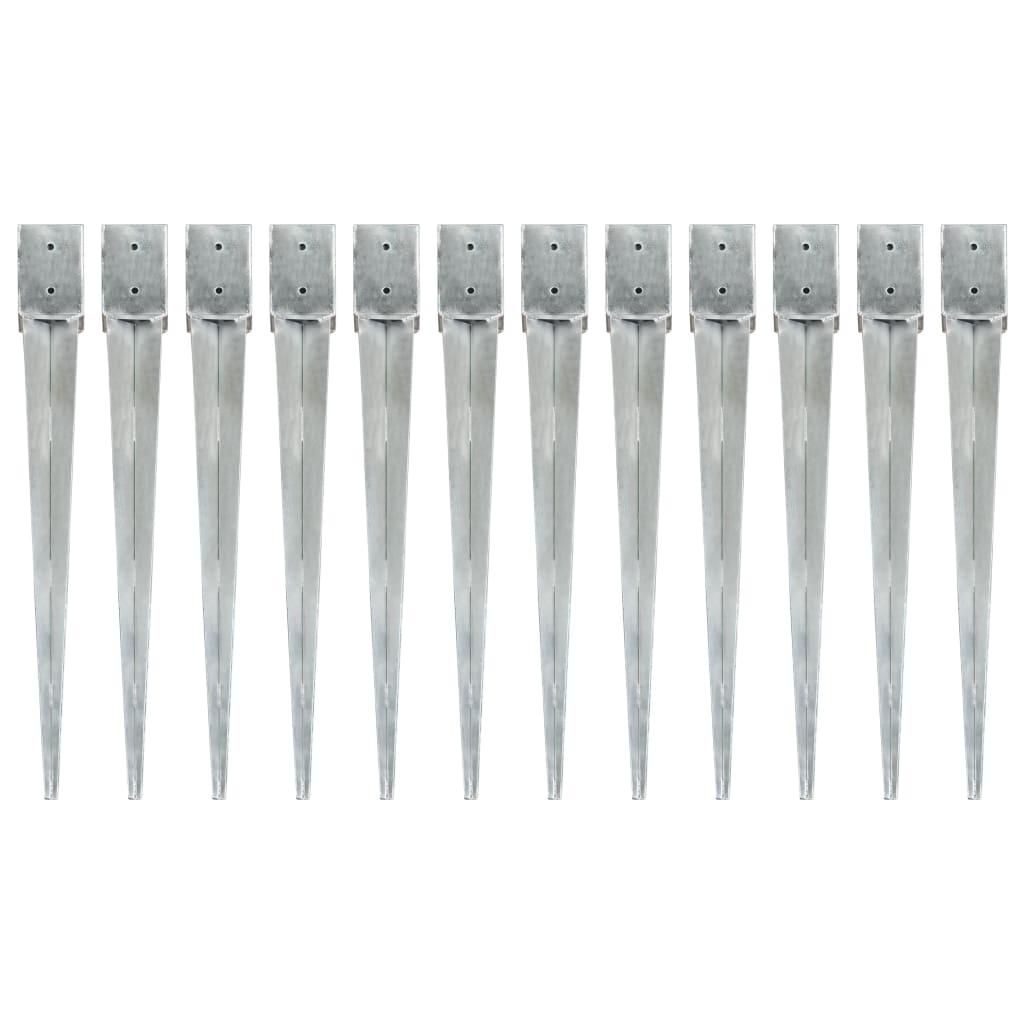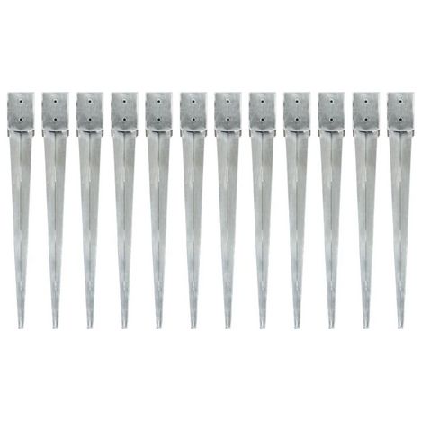 Piquets au sol 12 pcs Argente 10x10x91 cm Acier galvanise