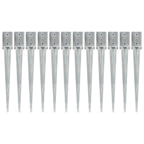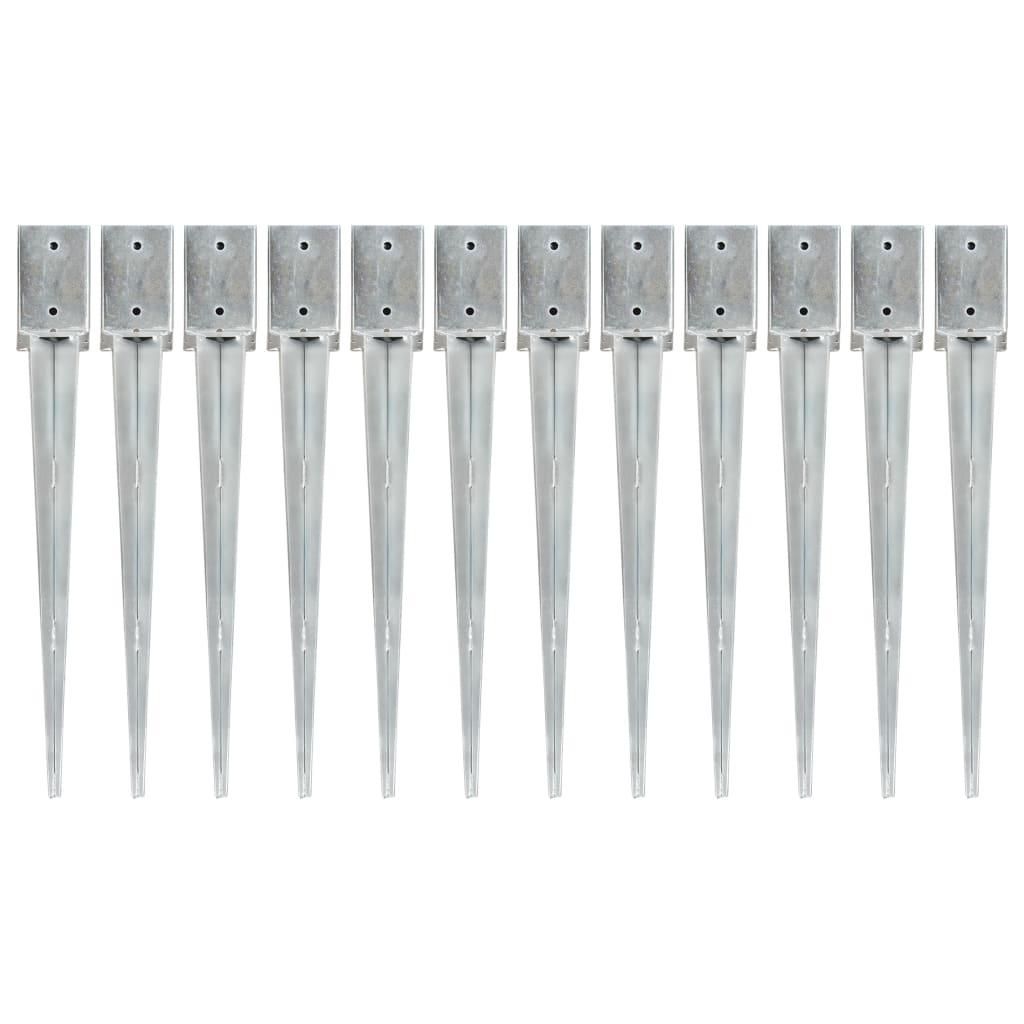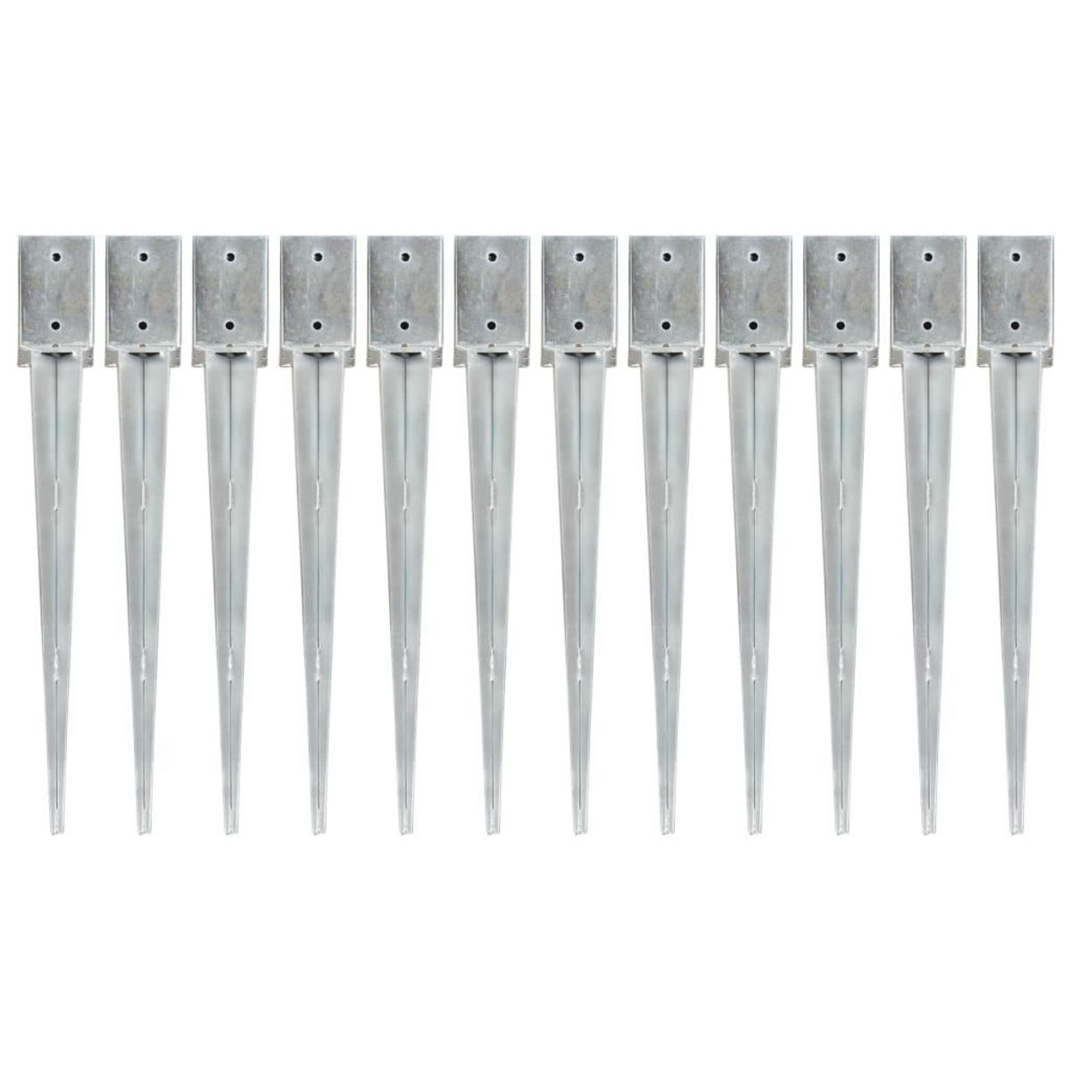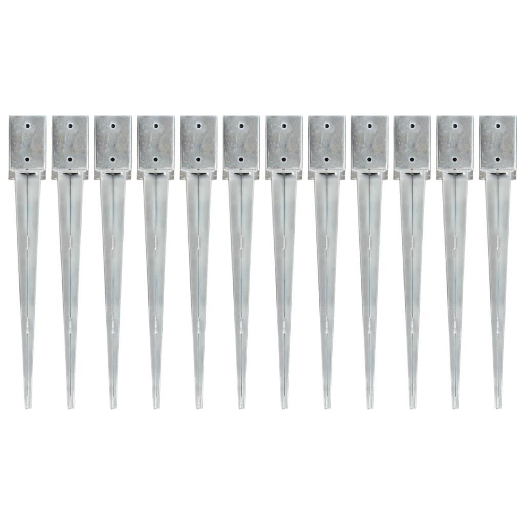 Piquets au sol 12 pcs Argente 9x9x75 cm Acier galvanise
