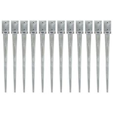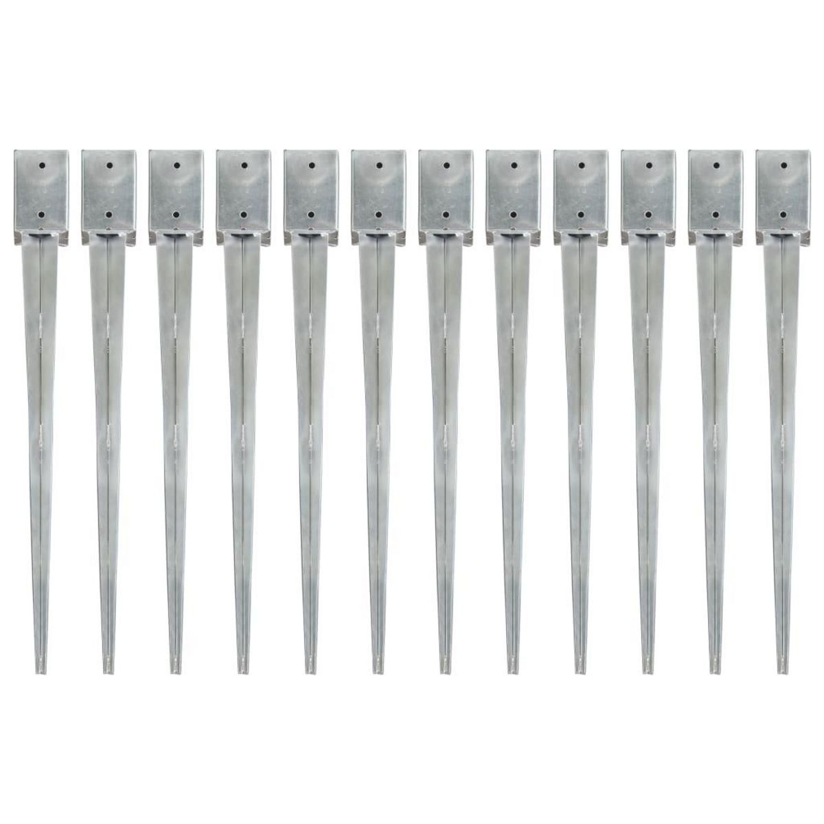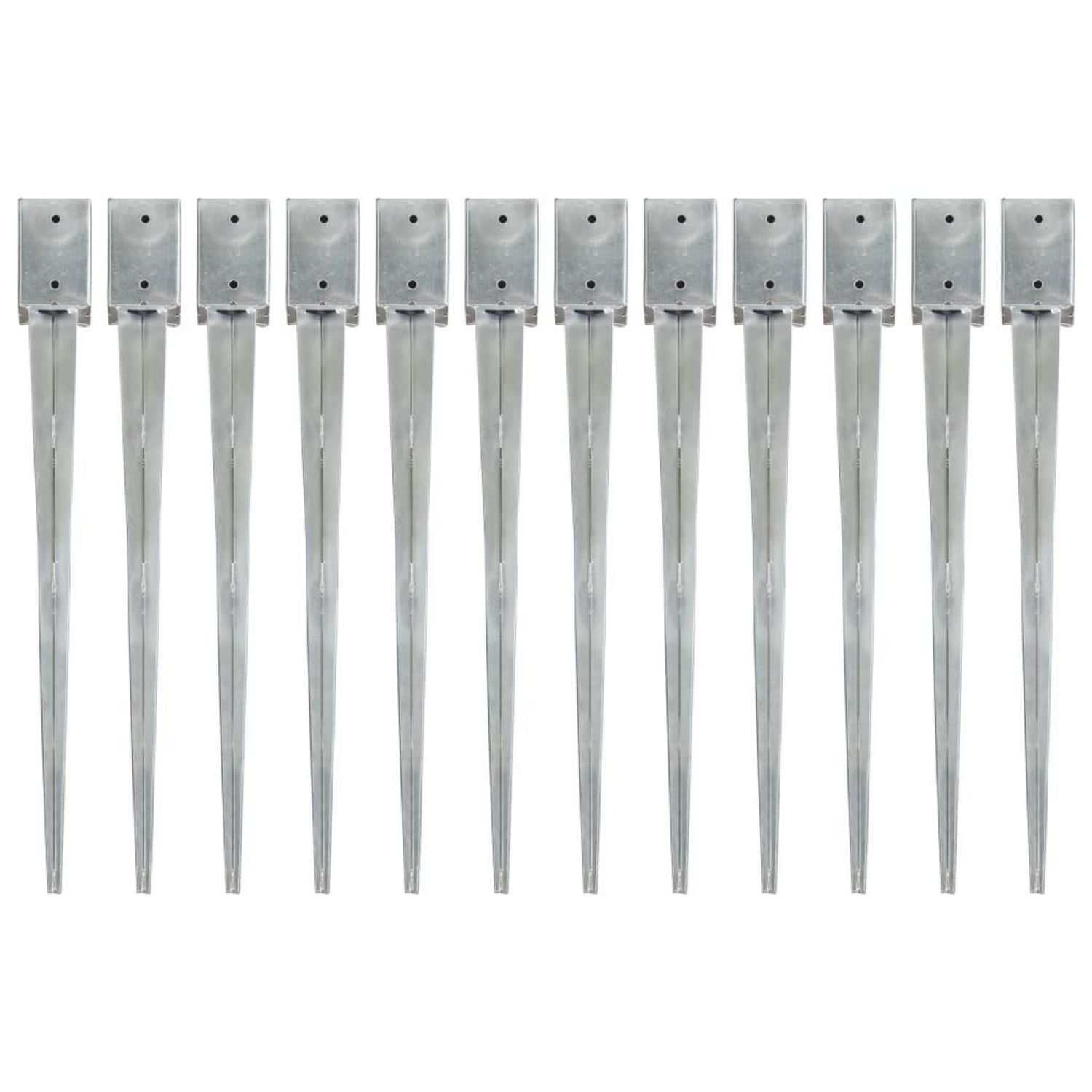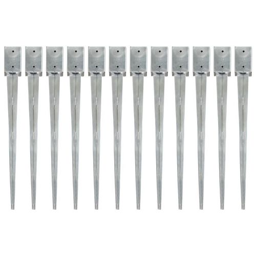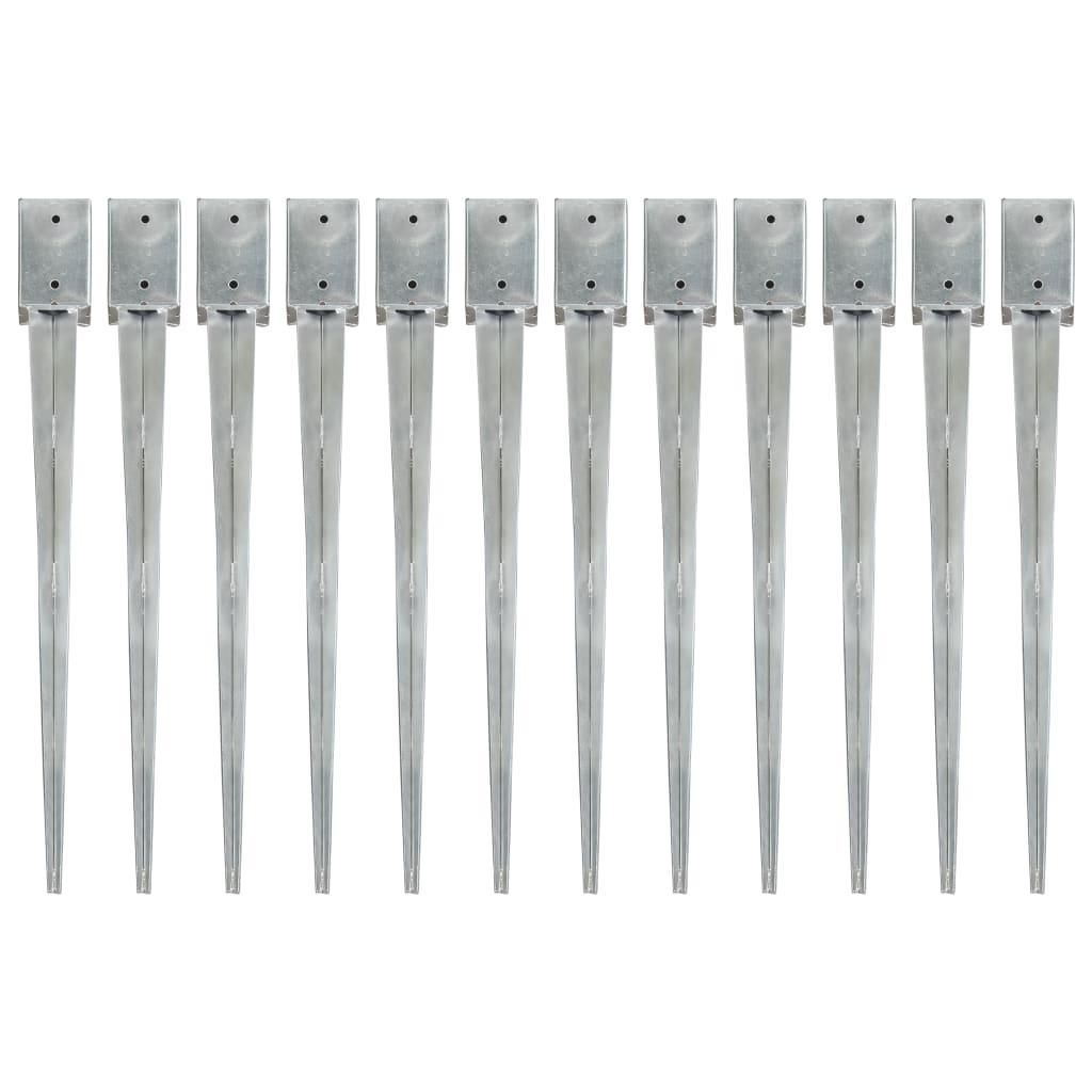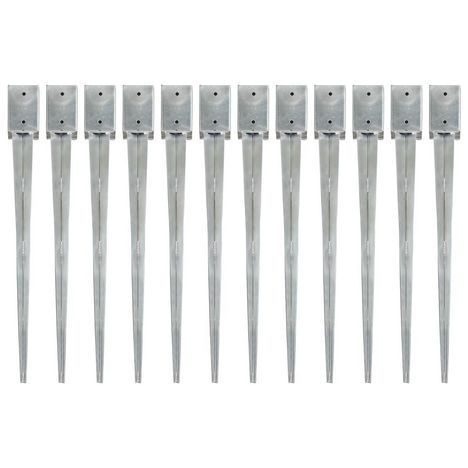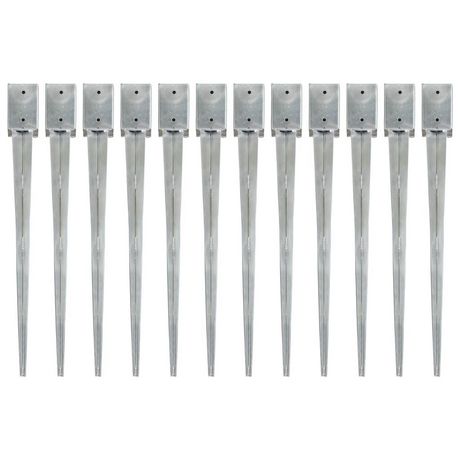 Piquets au sol 12 pcs Argente 9x9x90 cm Acier galvanise