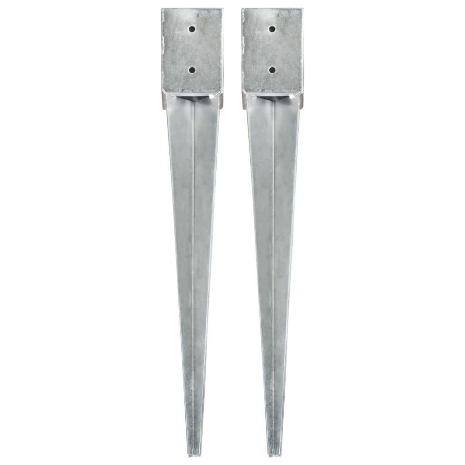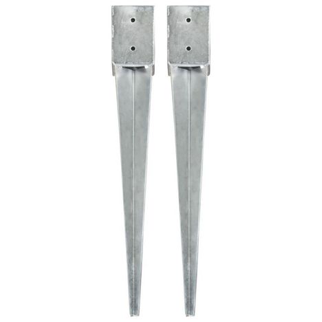 Piquets au sol 2 pcs Argente 10x10x76 cm Acier galvanise