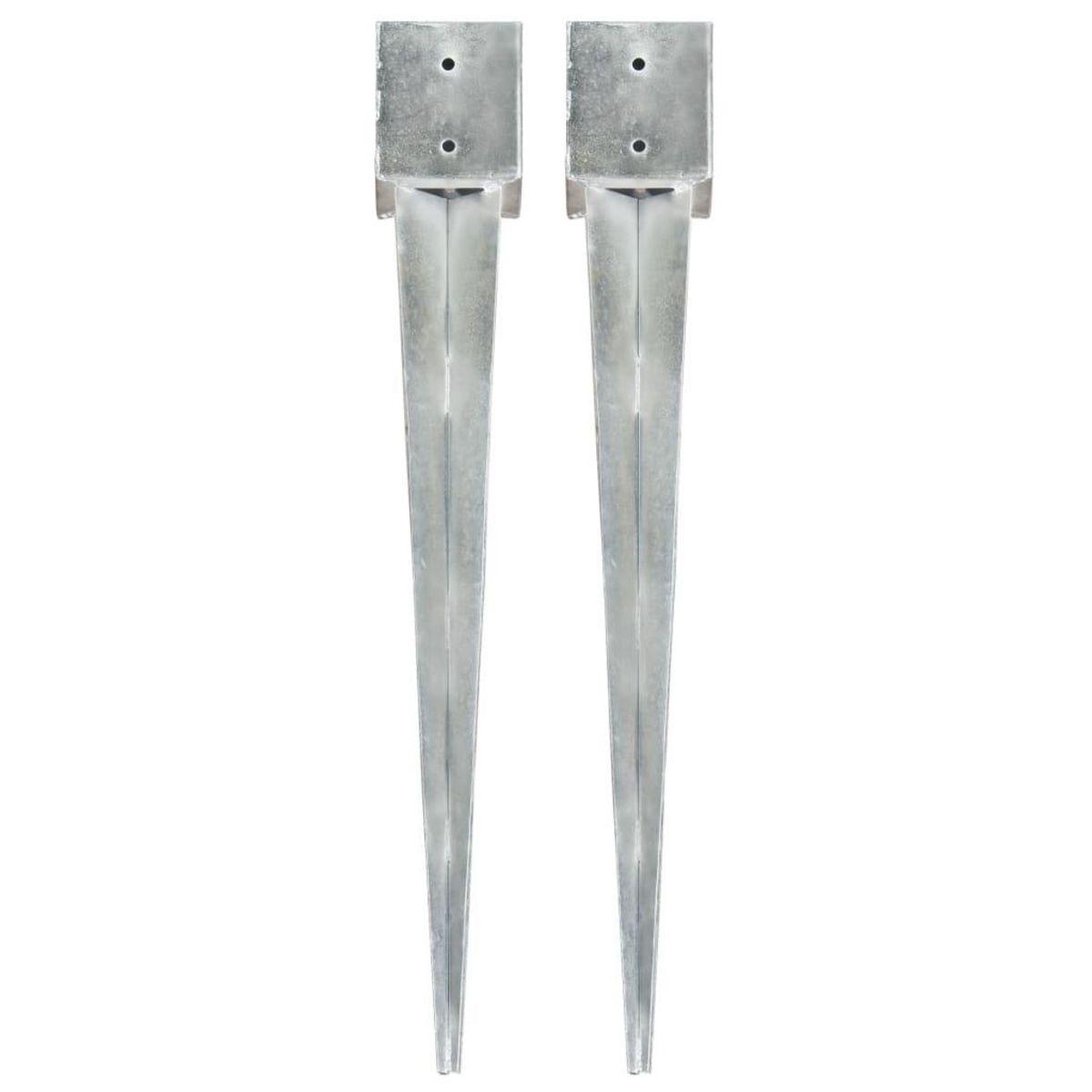 Piquets au sol 2 pcs Argente 12x12x89 cm Acier galvanise