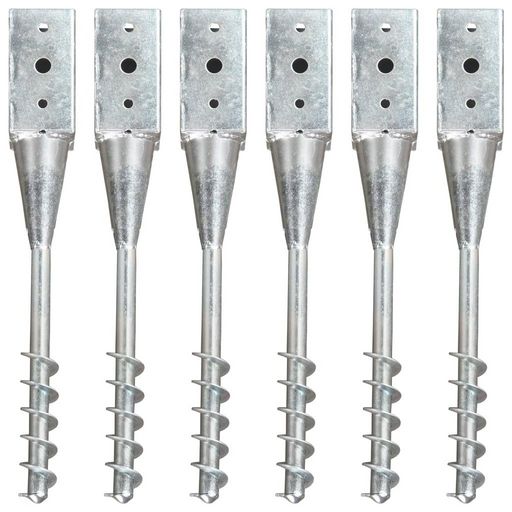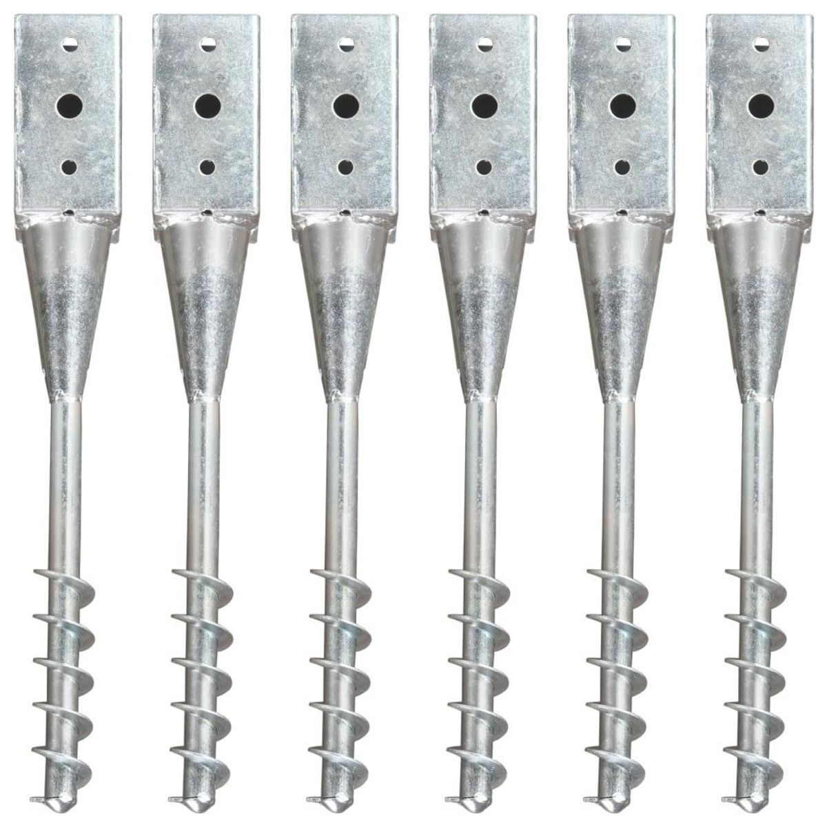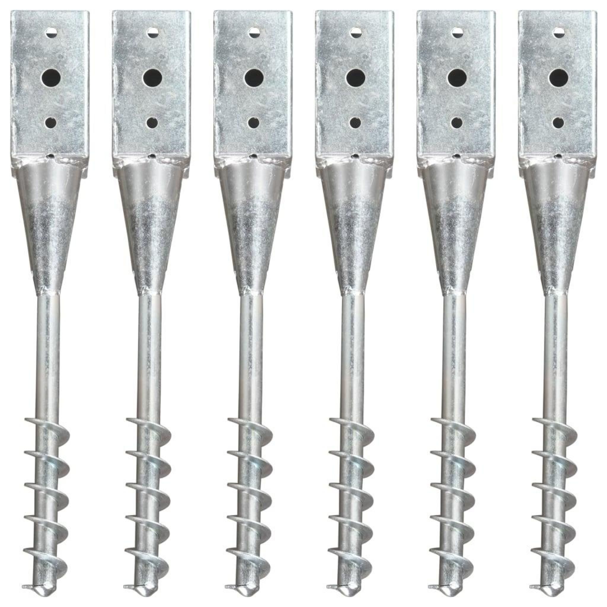 Piquets au sol 6 pcs Argente 10x10x57 cm Acier galvanise