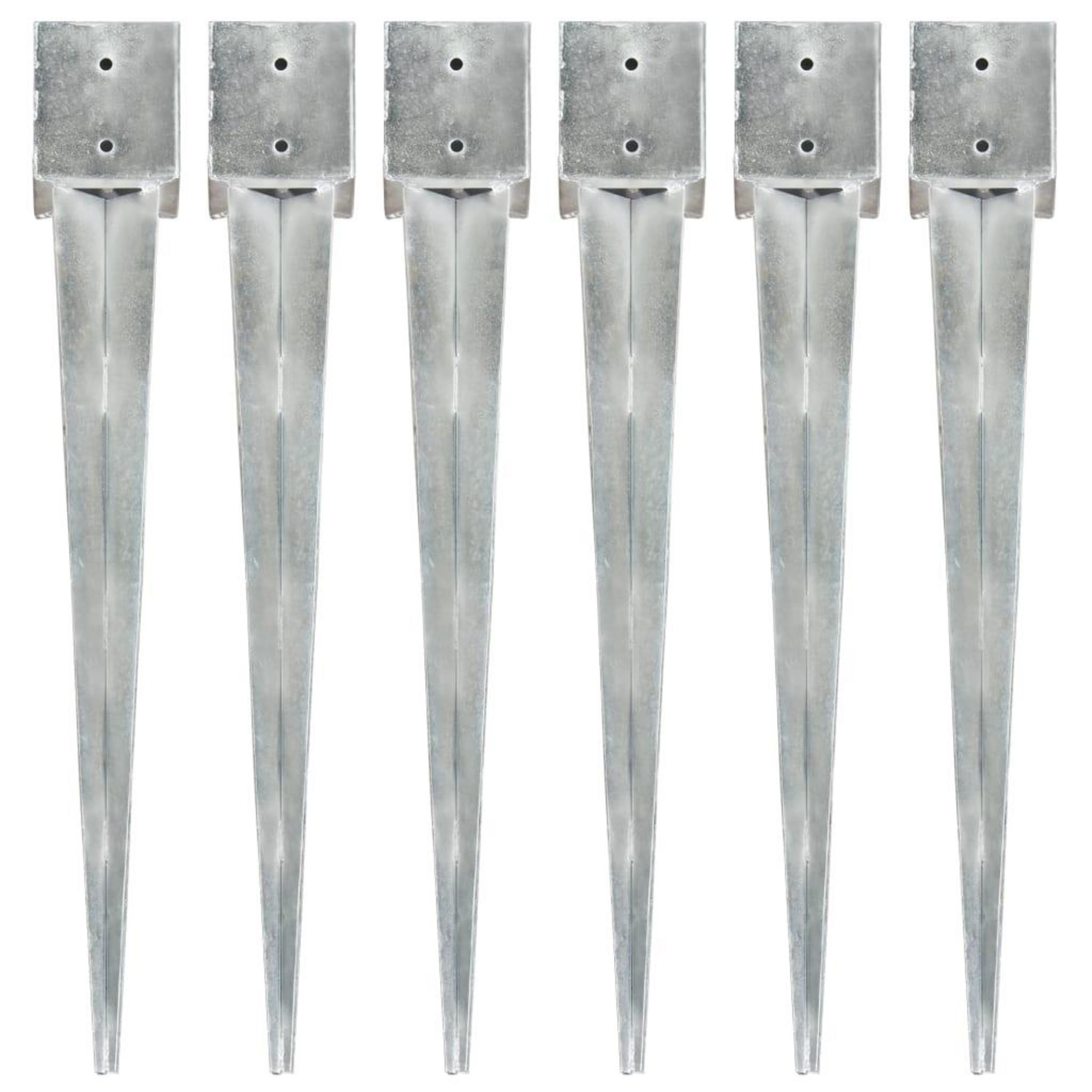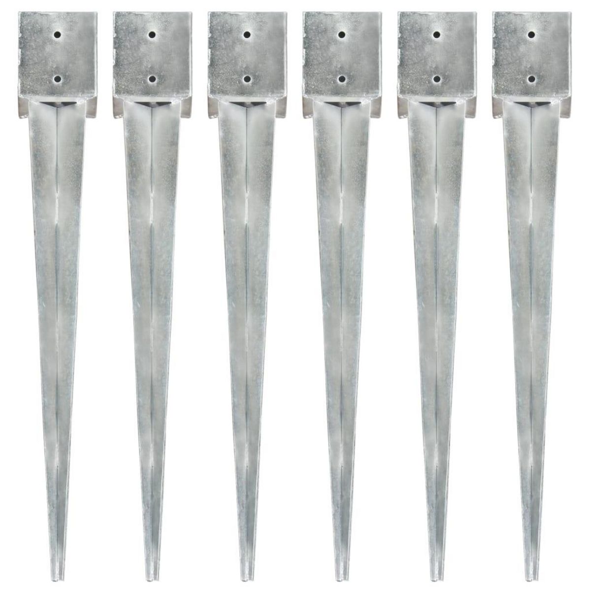 Piquets au sol 6 pcs Argente 12x12x89 cm Acier galvanise