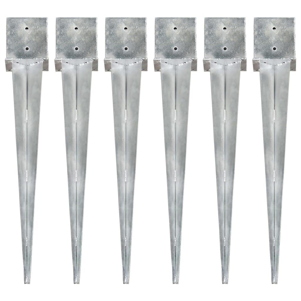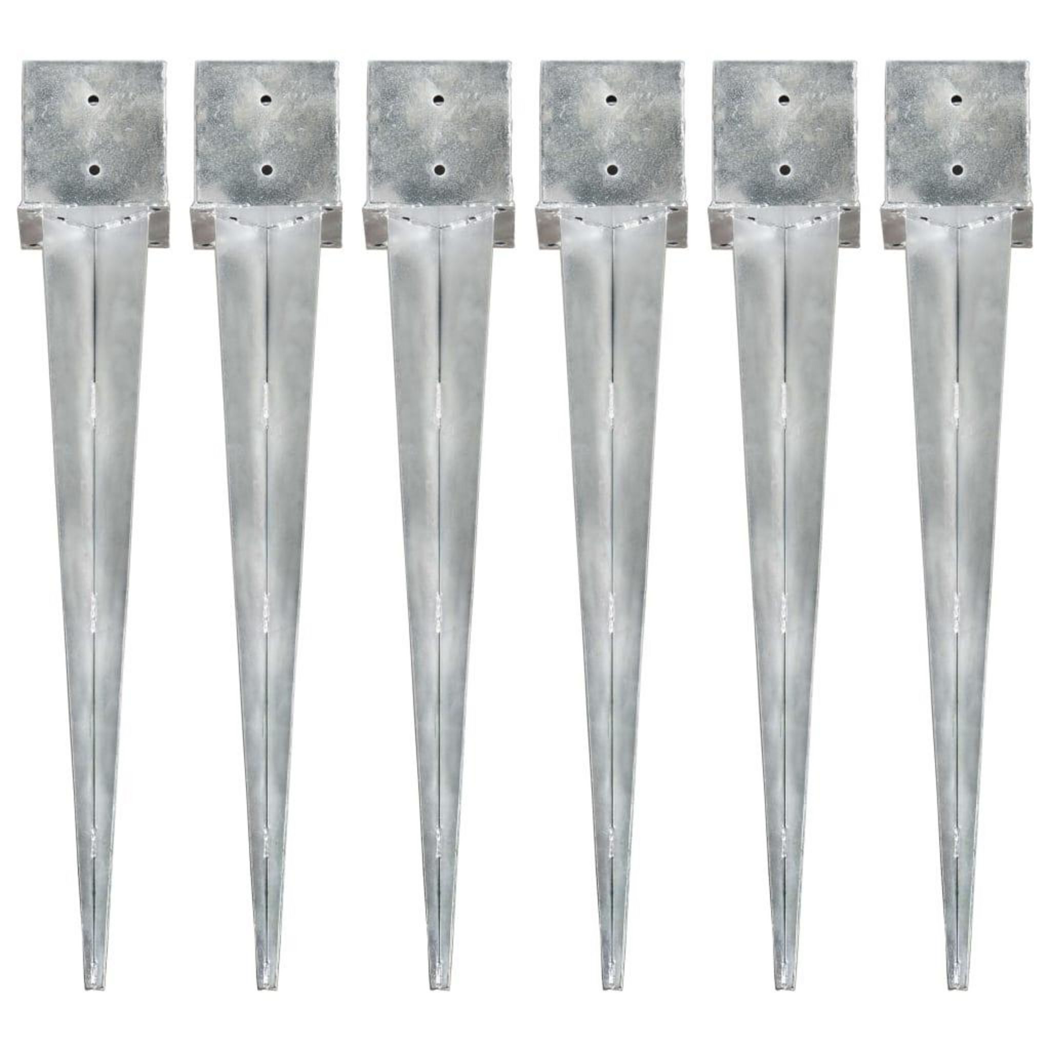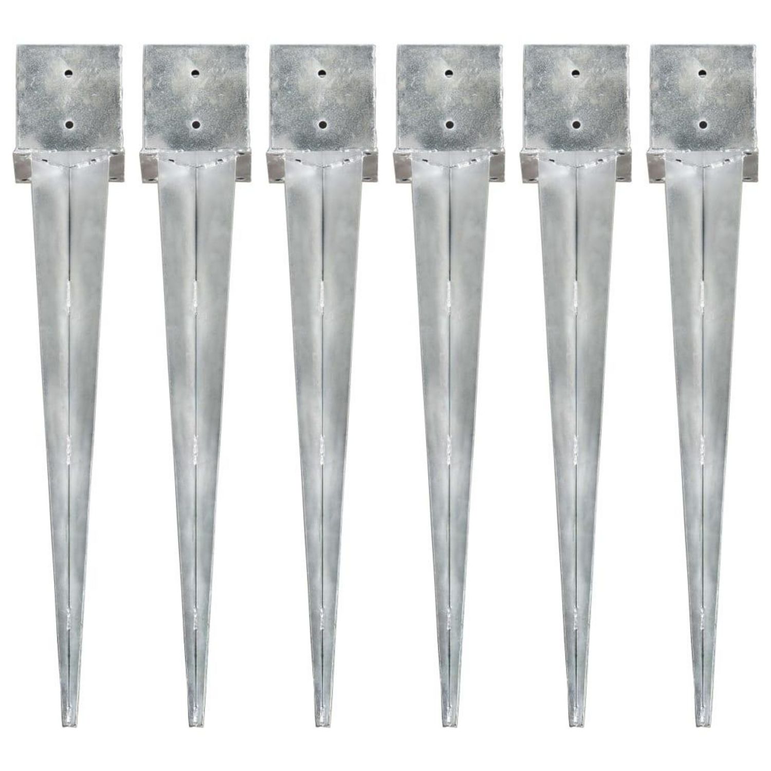 Piquets au sol 6 pcs Argente 14x14x91 cm Acier galvanise