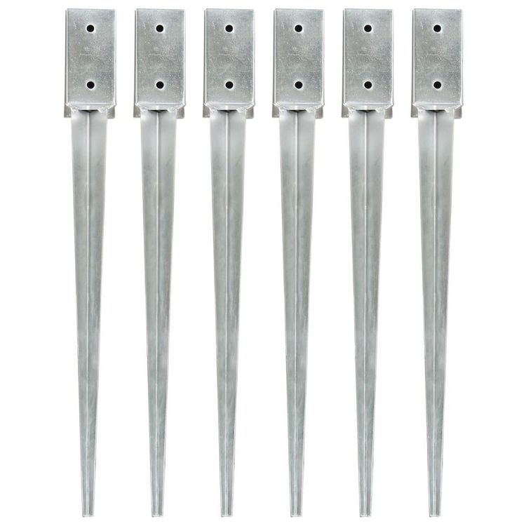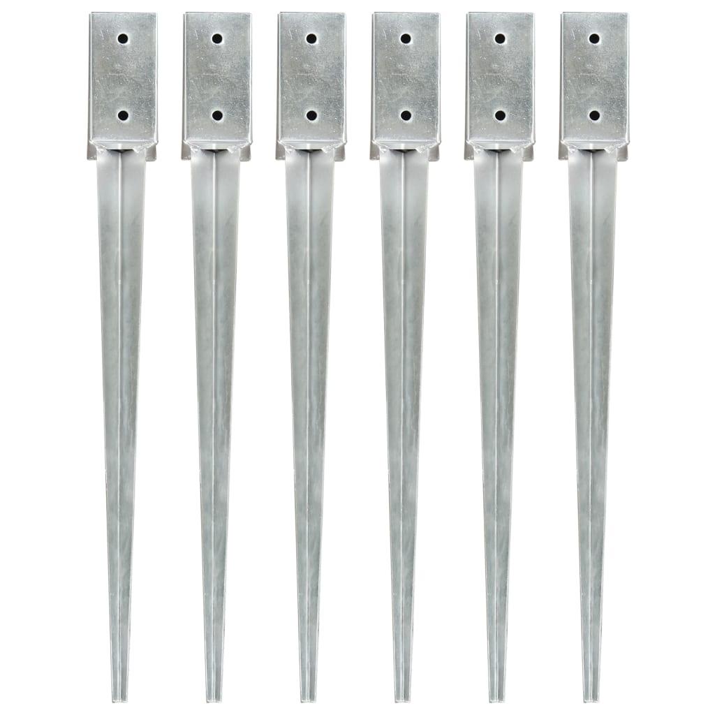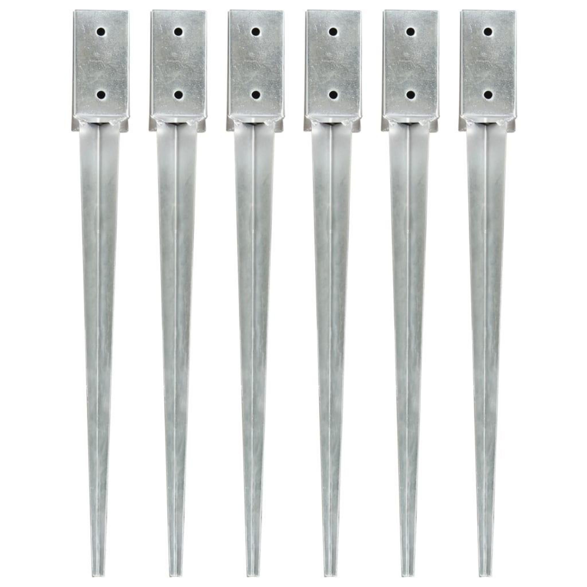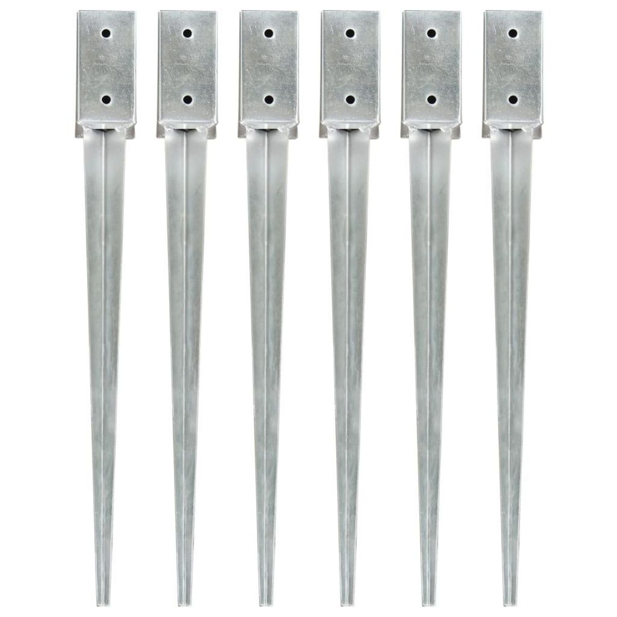 Piquets au sol 6 pcs Argente 7x7x75 cm Acier galvanise