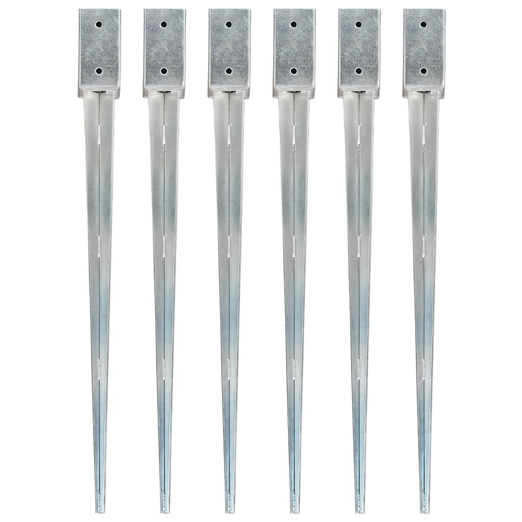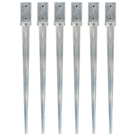 Piquets au sol 6 pcs Argente 7x7x90 cm Acier galvanise