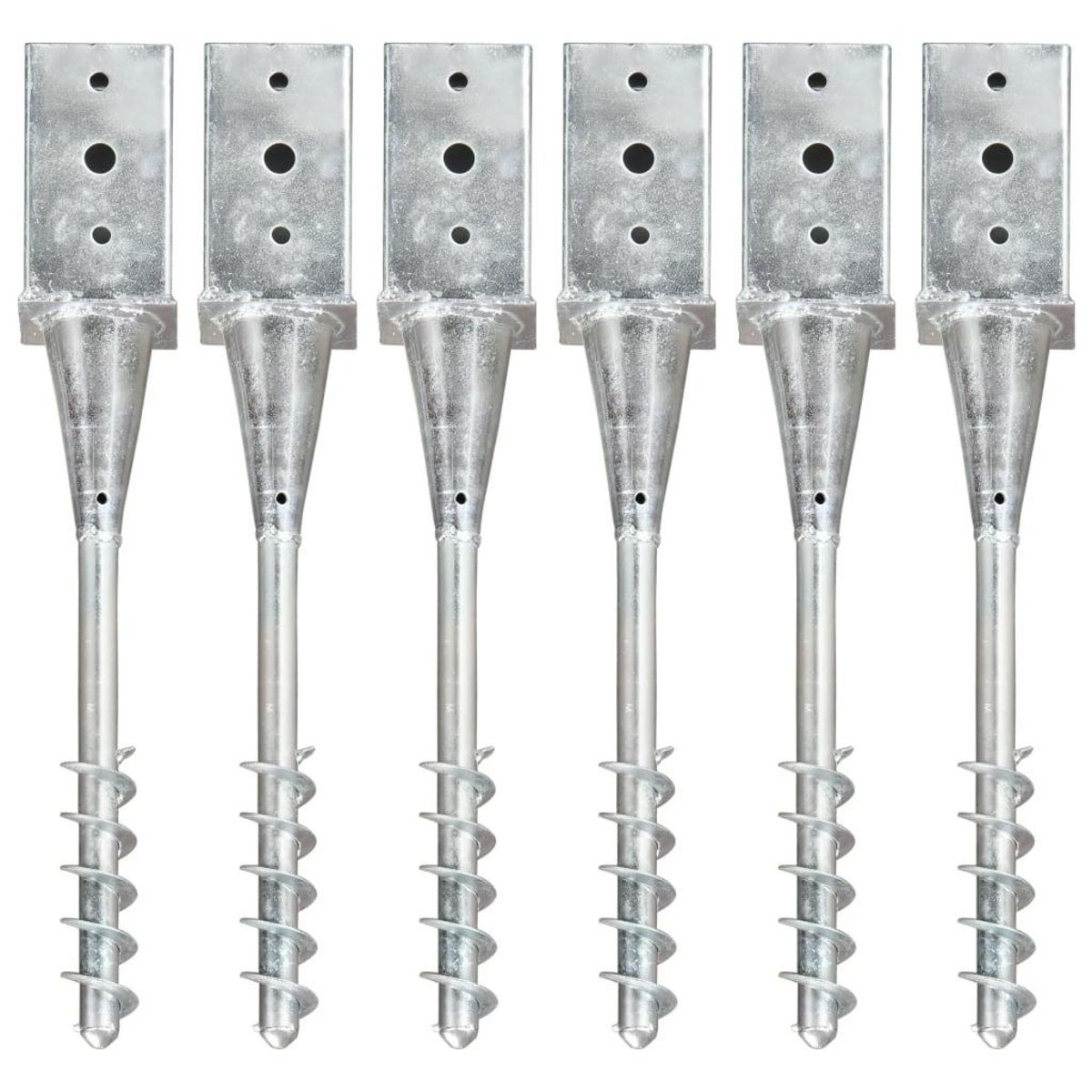 Piquets au sol 6 pcs Argente 8x8x57 cm Acier galvanise