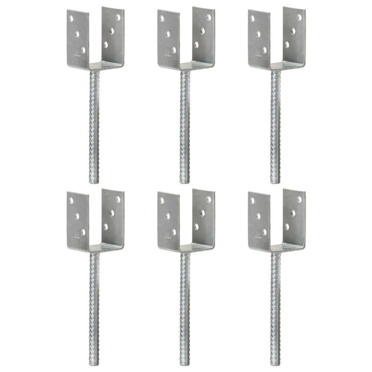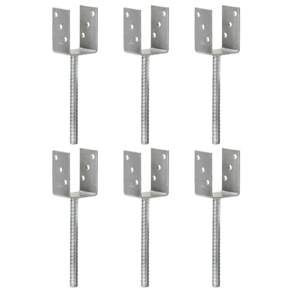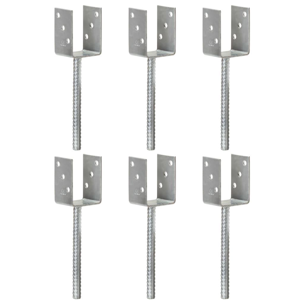 Piquets de cloture 6 pcs Argente 7x6x30 cm Acier galvanise