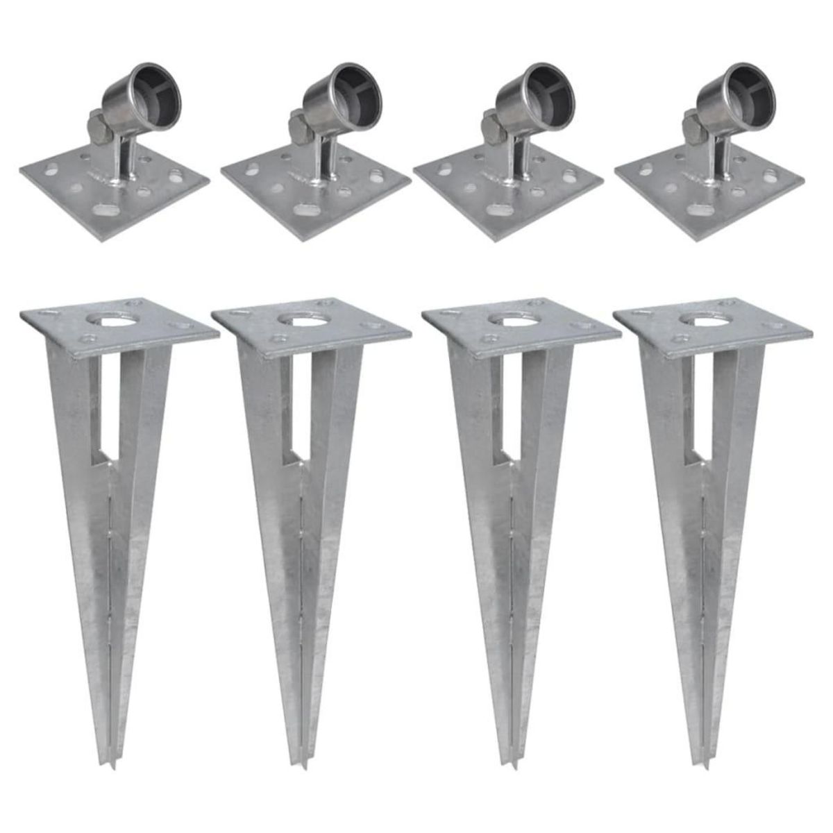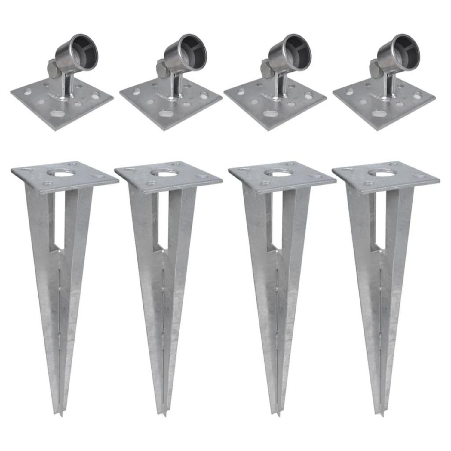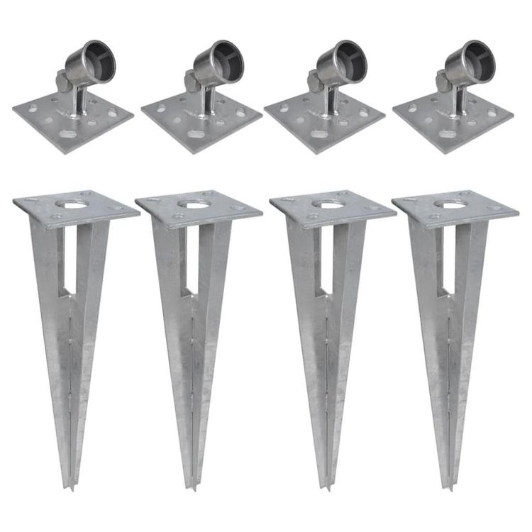 Cet ensemble compose de 4 piquets et 4 supports de poteau est conçu pour soutenir les poteaux de combat afin de mieux ancrer votre cloture. En acier zingue, l'ancrage des pointes et les supports de poteaux sont resistants a la rouille, assurant ainsi une utilisation a long terme.Materiau : acier zin