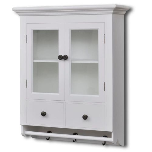 Cet elegant placard mural a l'aspect antique vous donnera amplement d'espace de rangement dans la cuisine et aidera a garder les choses bien organisees. Le placard a deux tiroirs et deux etageres, ce qui vous permet de ranger facilement les cereales, les epices, les collations, les conserves et plus