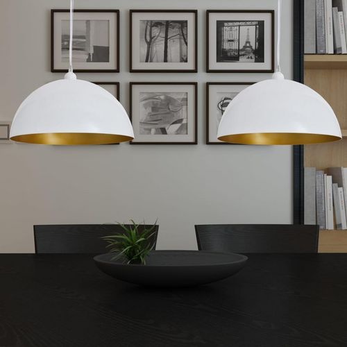 Plafonnier 2 pcs Hauteur reglable Semi-spherique Blanc