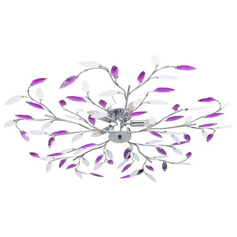 Cette lampe peut etre facilement montee sur n'importe quel plafond avec une base en metal durable. La finition chromee satinee donne a cette lampe un style contemporain. Le design en forme de feuille complete son look moderne. La lumiere reflechie sur ces feuilles acryliques presente un eclairage unique pour votre maison. De plus, le materiau acrylique est facile a nettoyer avec un chiffon humide.