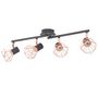 Ce plafonnier avec 4 projecteurs presente un design industriel et ameliorera le look de n'importe quelle piece. La lampe peut etre facilement montee au mur ou au plafond grace a sa base en metal noir de haute qualite. Les abats-jour des projecteurs uniques en fil de fer cuivre ajoutent a son style i