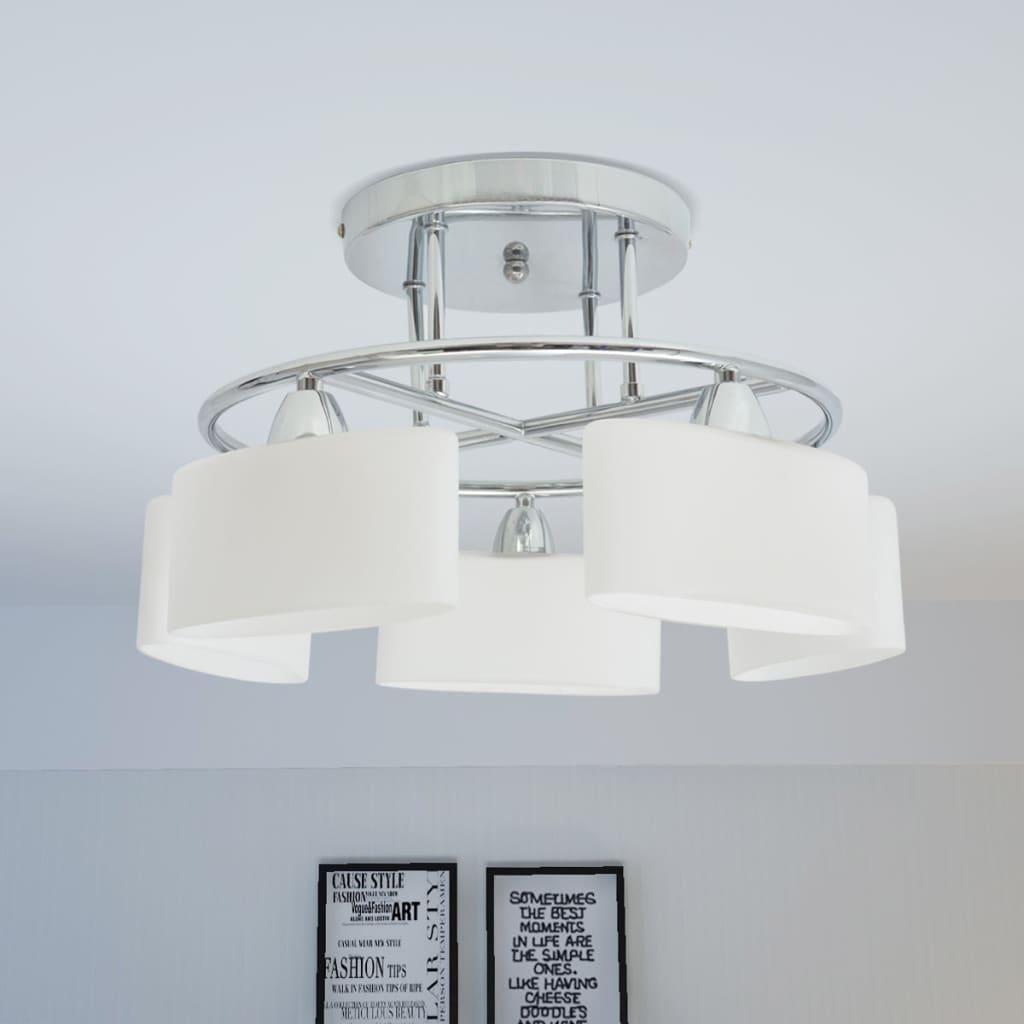 Plafonnier avec 5 globes ellipsoïdes pour ampoules E14 200 W