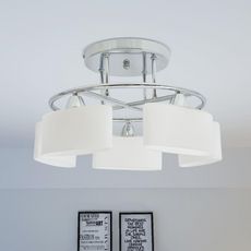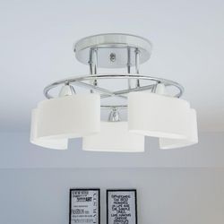 Cette lampe peut etre facilement montee sur n'importe quel plafond grace a sa base en metal de haute qualite. Une lumiere agreable passera a travers ces globes ellipsoïdes delicates, illuminant tous les coins de la piece. Ce plafonnier distingue sera superbe dans n'importe quelle piece de la maison.