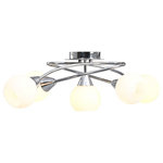 Cette lampe peut etre facilement montee sur n'importe quel plafond avec une base en metal durable. Quatre tubes en acier chrome emmeles et des abat-jour sous forme de bol completent un look elegant. La finition en chrome satine donne a cette lampe un style contemporain, la rendant parfaite pour le salon ou la chambre a coucher avec n'importe quel style. Elle est egalement facile a entretenir et a nettoyer avec un chiffon humide.