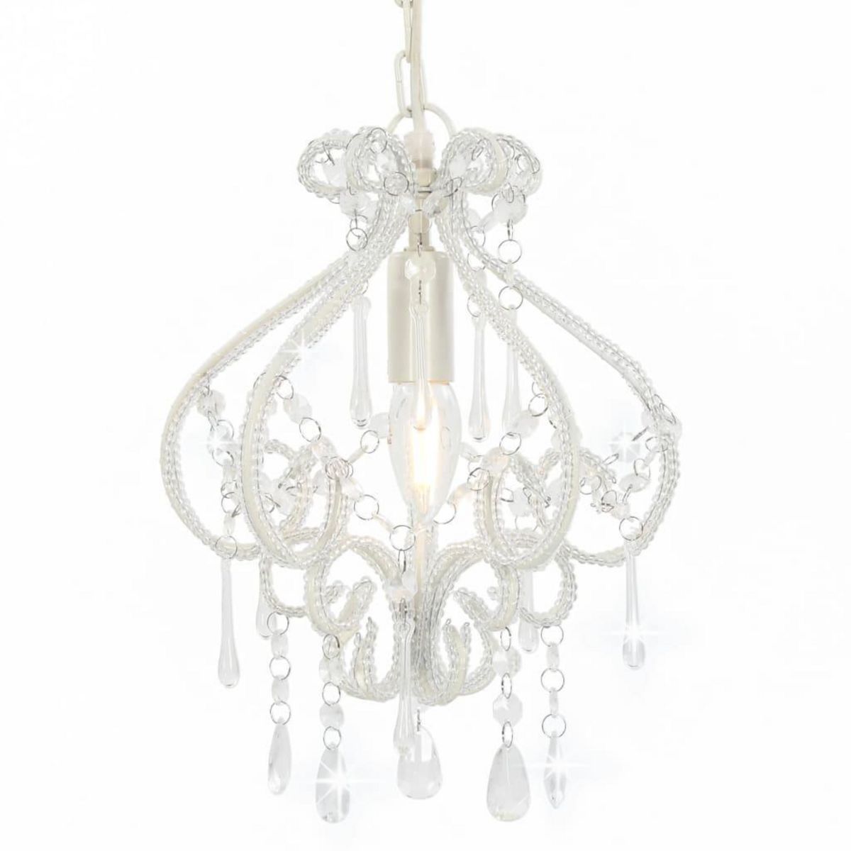 - Couleur : blanc (base de la lampe) + transparent (perles)