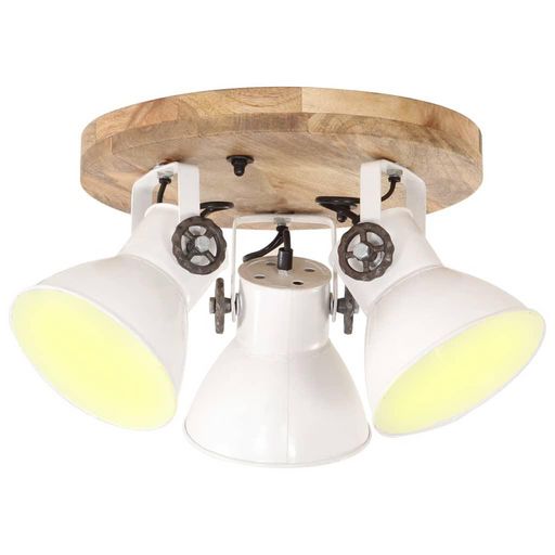 L'abat-jour en fer, avec finition blanche et bois de manguier massif avec finition marron grange patine, s'integrera parfaitement dans un interieur rural ou industriel. La lampe suspendue, avec 3 abat-jour, a une douille E27 pour une ampoule d'un maximum de 25 watts. Vous pouvez choisir et installer des ampoules E27 avec differentes couleurs de lumiere, creant une atmosphere de detente et de repos.