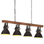 Les abat-jour en fer, avec une finition noire et bois de manguier massif avec finition marron grange patine, s'integreront parfaitement dans un interieur rural ou industriel. Le plafonnier, avec 4 abat-jour, a une douille E27 pour une ampoule d'un maximum de 25 watts. Vous pouvez choisir et installer des ampoules E27 avec differentes couleurs de lumiere, creant une atmosphere de detente et de repos.