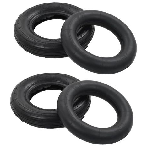 Pneu de brouette et chambre a air 4 pcs 3.50-8 4PR Caoutchouc