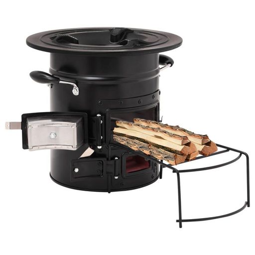 En savoir +Ce poele a bois de camping sert d'ustensile de cuisine lorsque vous avez des activites de plein air tout en creant de la chaleur supplementaire et de l'ambiance chaleureuse lorsqu'il fait plus froid.