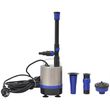 La pompe d'etang est equipee d'un moteur a haut rendement energetique qui a une grande capacite a une faible consommation d'energie. La tete maximale de cette pompe est de 1,6 metres. La conception compacte et le fonctionnement silencieux, ainsi que les 4 buses interchangeables incluses, font de cette pompe un choix parfait. Elle est fournie avec un cable de securite electriquement mis a la terre de 10 m et une fiche.