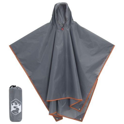 Poncho de pluie avec capuche design 2 en 1 gris et orange