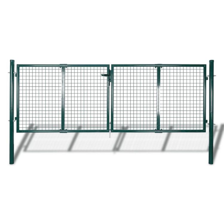 Fabrique en acier robuste, le portail a une construction robuste et a ete enduit de poudre contre la rouille et la corrosion. Ce portail a une charniere de boulon et les poteaux lateraux sont inclus pour l'installation facile. Trois cles correspondantes pour la serrure sont egalement incluses.