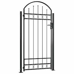 Avec sa conception elegante avec dessus arque et ses entretoises horizontales solides pour renforcer le cadre, notre portail de jardin offre un haut degre de securite tout en formant une magnifique entree sur votre propriete. Fabrique a partir d'acier robuste, le portail possede un revetement en poudre qui le protege contre la rouille et la corrosion.
