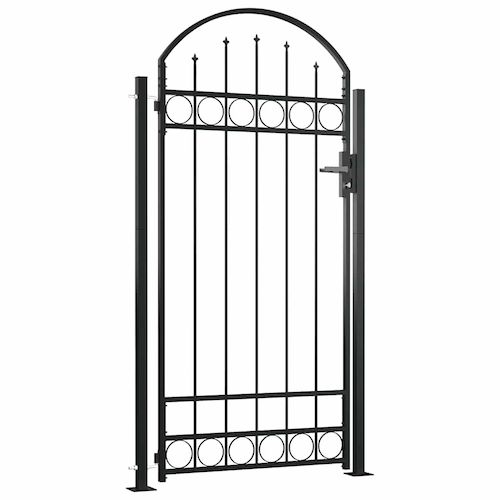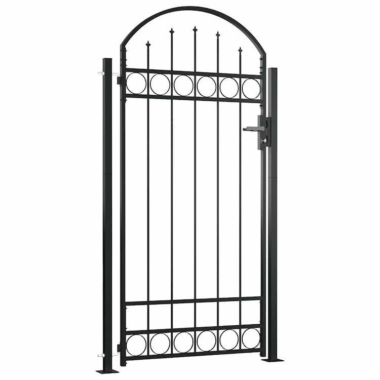 Portail de cloture ASSEN avec arc surbaisse et 2 poteaux, 105 x 170 cm, noir