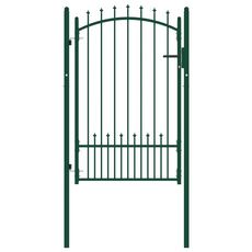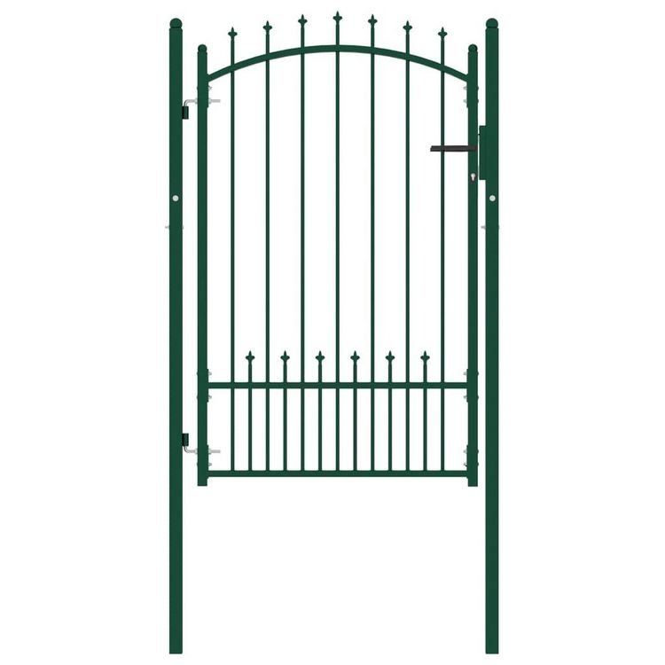Fabrique en acier robuste, le portail de cloture a une construction robuste et a ete enduit de poudre contre la rouille et la corrosion. Avec les barres verticales comportant des pointes et une forte entretoise horizontale comme renfort, cette porte de jardin offre un haut degre de securite. Le design arque ajoute a son elegance. Elle est livree avec deux poteaux solides ainsi que des charnieres robustes pour une installation facile, et un systeme de verrouillage avec trois cles assorties est egalement inclus dans la livraison.