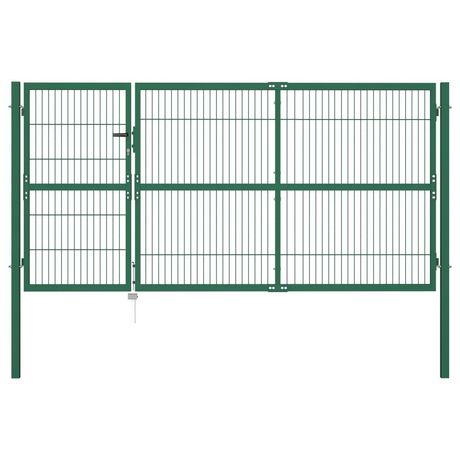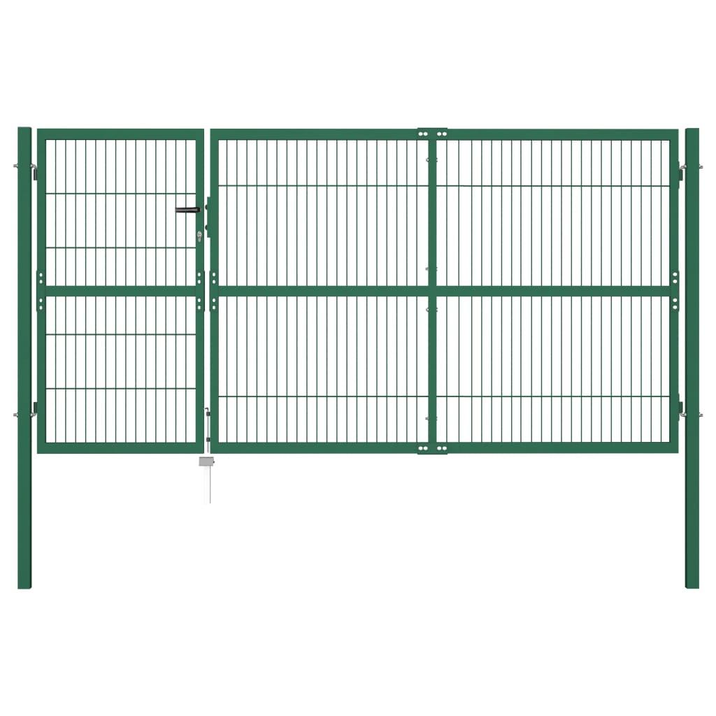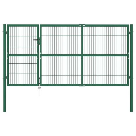 Portail de cloture de jardin avec poteaux 350x140 cm Acier Vert