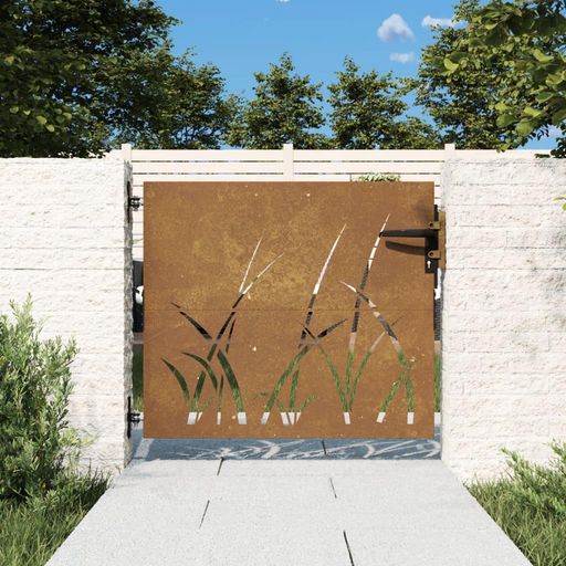 Portail de jardin 85x75 cm acier corten conception d'herbe