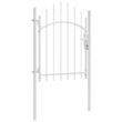 Grace a son design elegant et au dessus arque et a ses renforts horizontaux resistants pour renforcer le cadre, notre portail de jardin fournira un haut degre de securite tout en constituant une fabuleuse entree sur votre propriete. Fabriquee en acier robuste, la porte est revetue de poudre contre la rouille et la corrosion. Cette porte de cloture est equipee d'un systeme de verrouillage et est livree avec deux poteaux solides le long des charnieres robustes pour une installation facile.