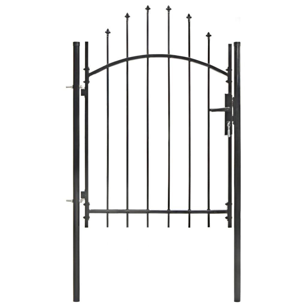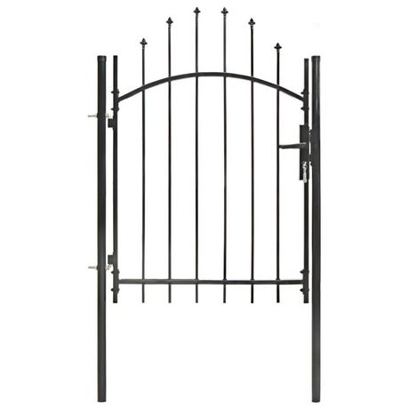 Grace a son design elegant et au dessus arque et a ses renforts horizontaux resistants pour renforcer le cadre, notre portail de jardin fournira un haut degre de securite tout en constituant une fabuleuse entree sur votre propriete. Fabriquee en acier robuste, la porte est revetue de poudre contre la rouille et la corrosion. Cette porte de cloture est equipee d'un systeme de verrouillage et est livree avec deux poteaux solides le long des charnieres robustes pour une installation facile.