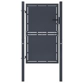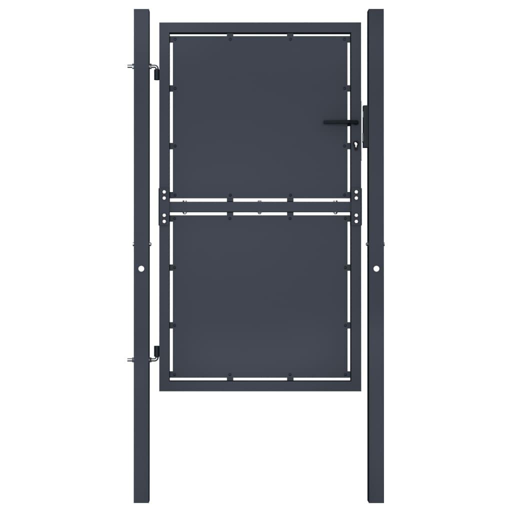 La porte de jardin est en acier, ce qui garantit son excellente durabilite et stabilite. Grace a sa structure etanche, le portail de cloture offre une rigidite supplementaire. De plus, notre porte de jardin offrira un degre eleve de securite et d'intimite supplementaire, tout en formant une fabuleuse entree sur votre propriete. Cette porte est egalement livree avec deux poteaux solides ainsi que des charnieres robustes pour une installation facile.