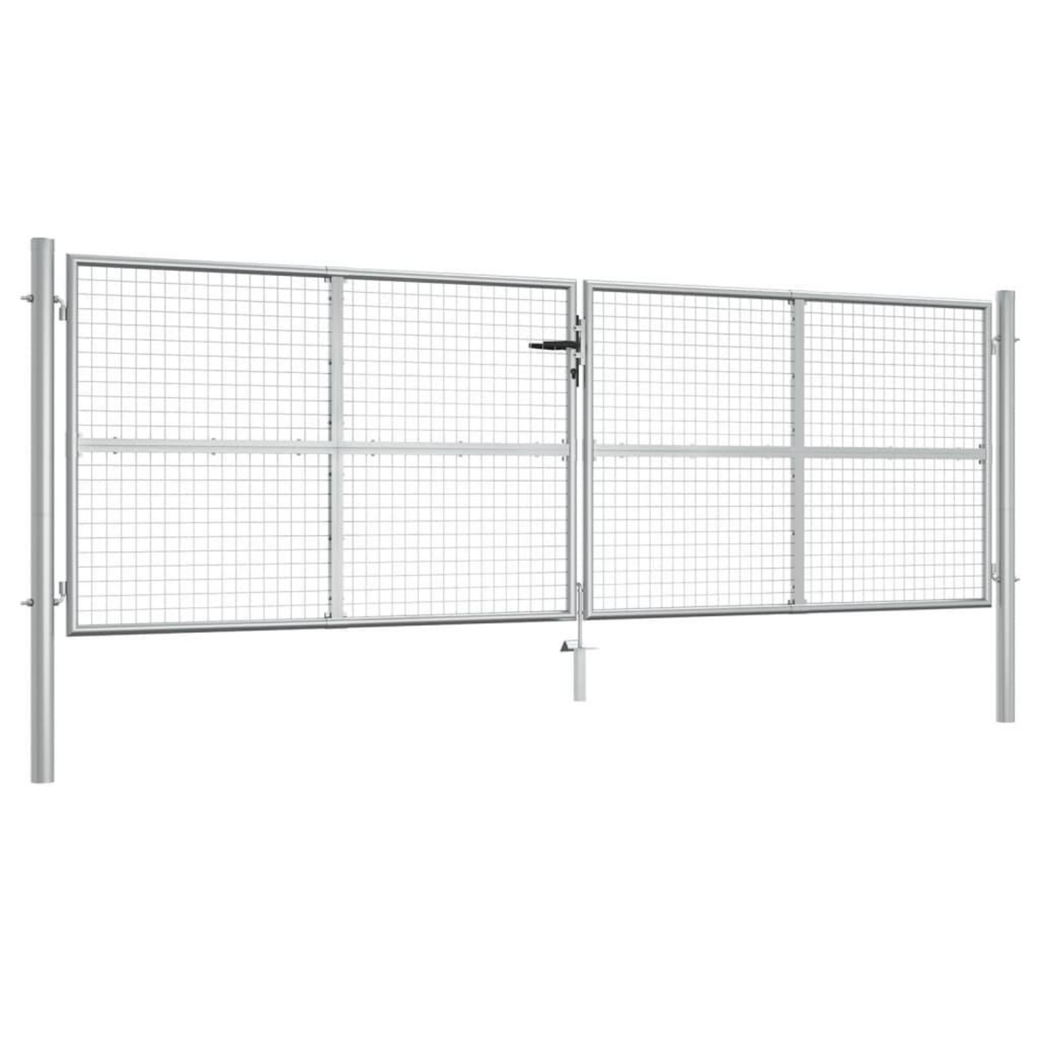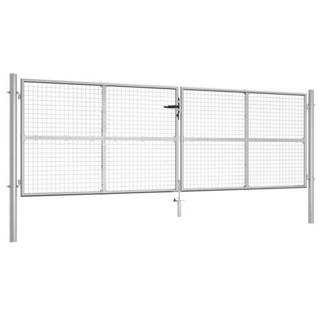 Portail de jardin en acier galvanise 415 x 125 cm Argent