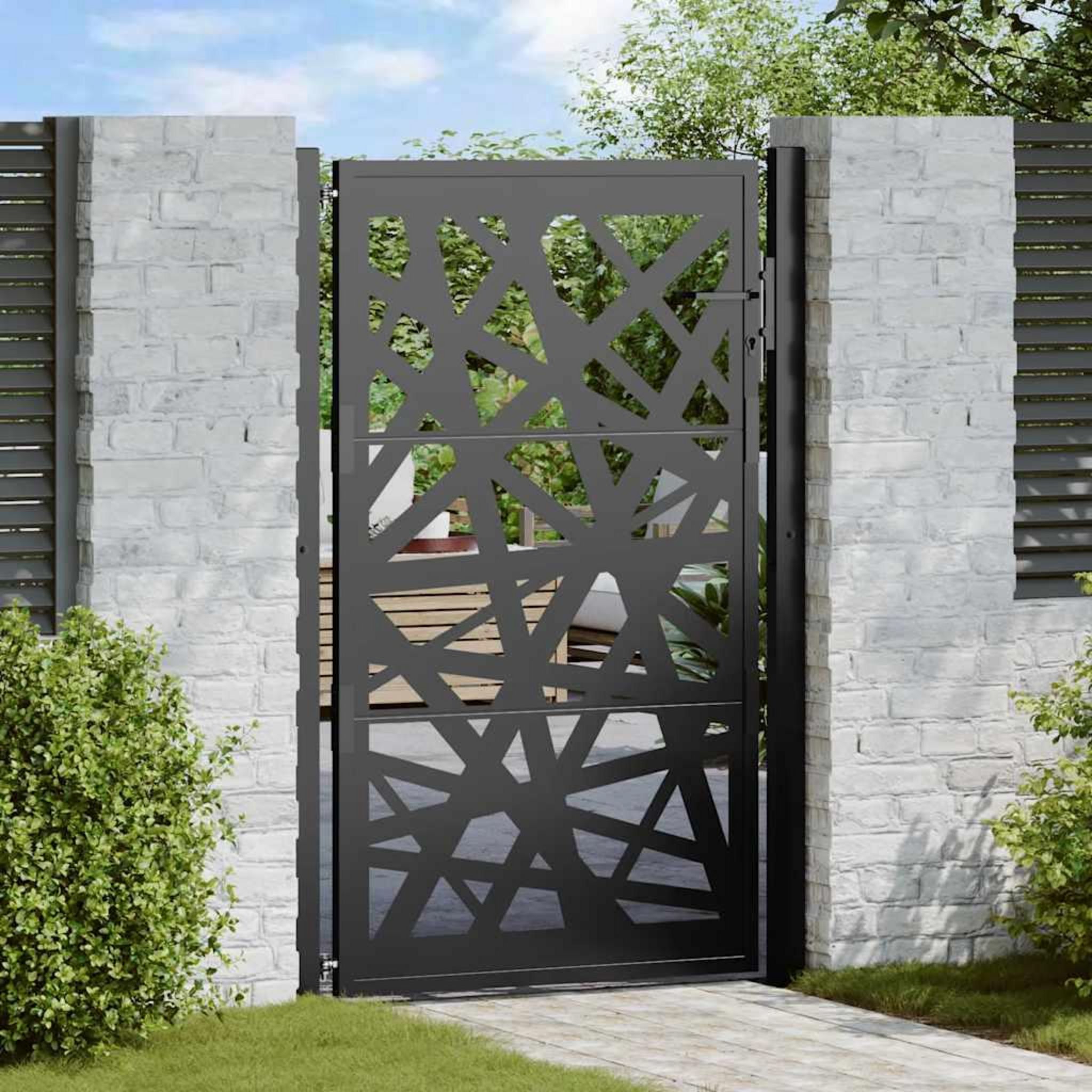 Portail de jardin noir 105x155 cm acier conception de lumiere