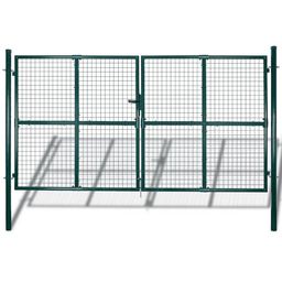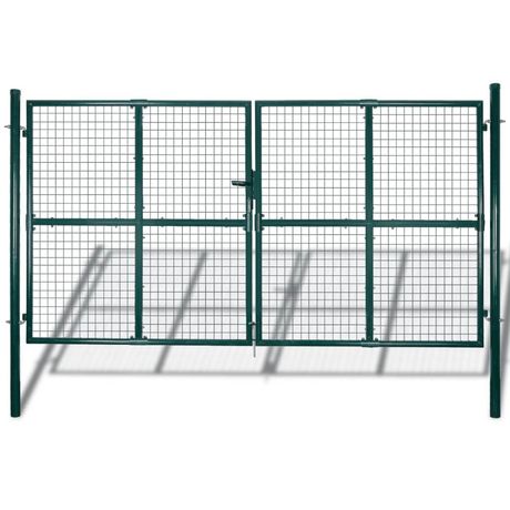Fabrique en acier robuste, le portail est de construction robuste et a ete recouvert de poudre contre la rouille et la corrosion. Cette porte a deux poteaux solides avec des charnieres robustes pour une installation facile et un systeme de verrouillage robuste avec trois cles correspondants est egalement inclus dans la livraison.