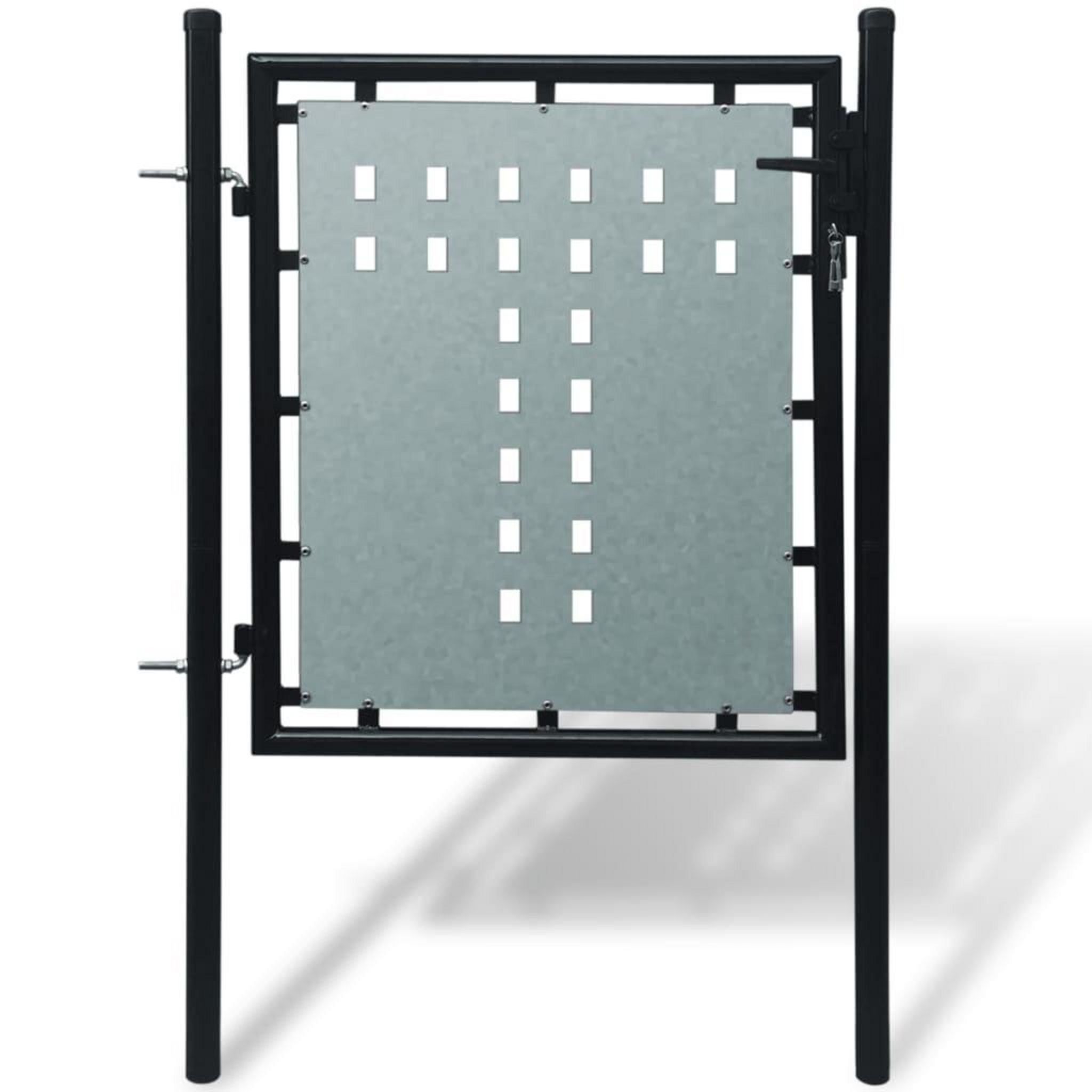 Une tole galvanisee avec un motif de trous decoratifs renforce le cadre, donc notre porte de jardin offrira un degre eleve de securite, tout en formant une fabuleuse entree sur votre propriete. Fabrique en acier robuste, le portail est enduit de poudre contre la rouille et la corrosion.