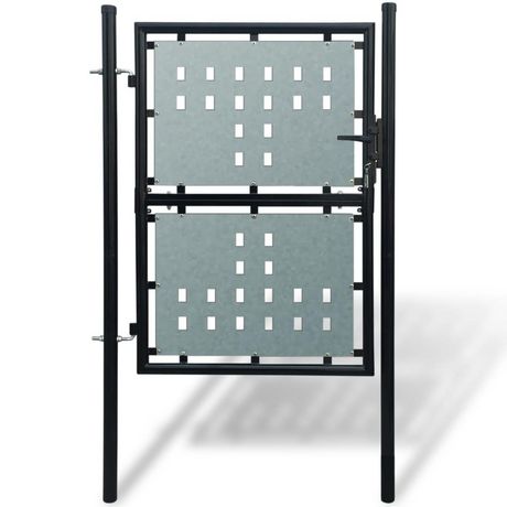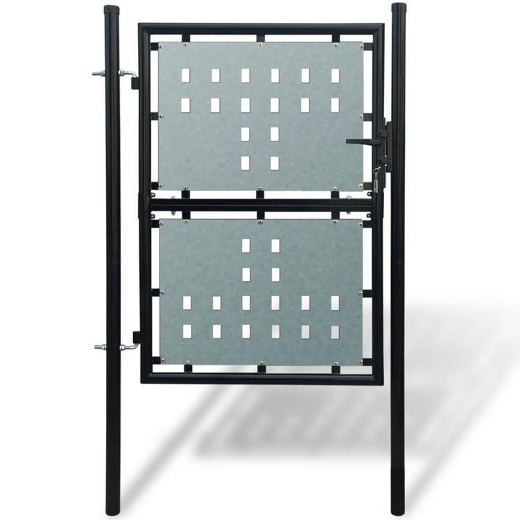 Les toles galvanisees avec des motifs de trous decoratifs renforcent le cadre, donc notre porte de jardin offrira un degre eleve de securite, tout en formant une fabuleuse entree sur votre propriete. Fabrique en acier robuste, le portail est enduit de poudre contre la rouille et la corrosion.