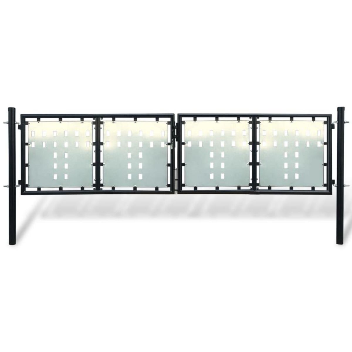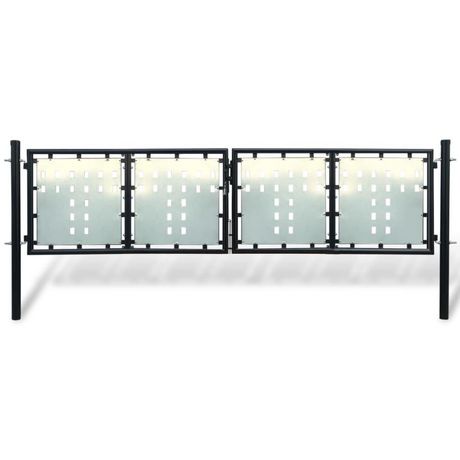 Les toles galvanisees avec des motifs de trous decoratifs renforcent le cadre, donc notre porte de jardin offrira un degre eleve de securite, tout en formant une fabuleuse entree sur votre propriete. Fabrique en acier robuste, le portail est enduit de poudre contre la rouille et la corrosion.