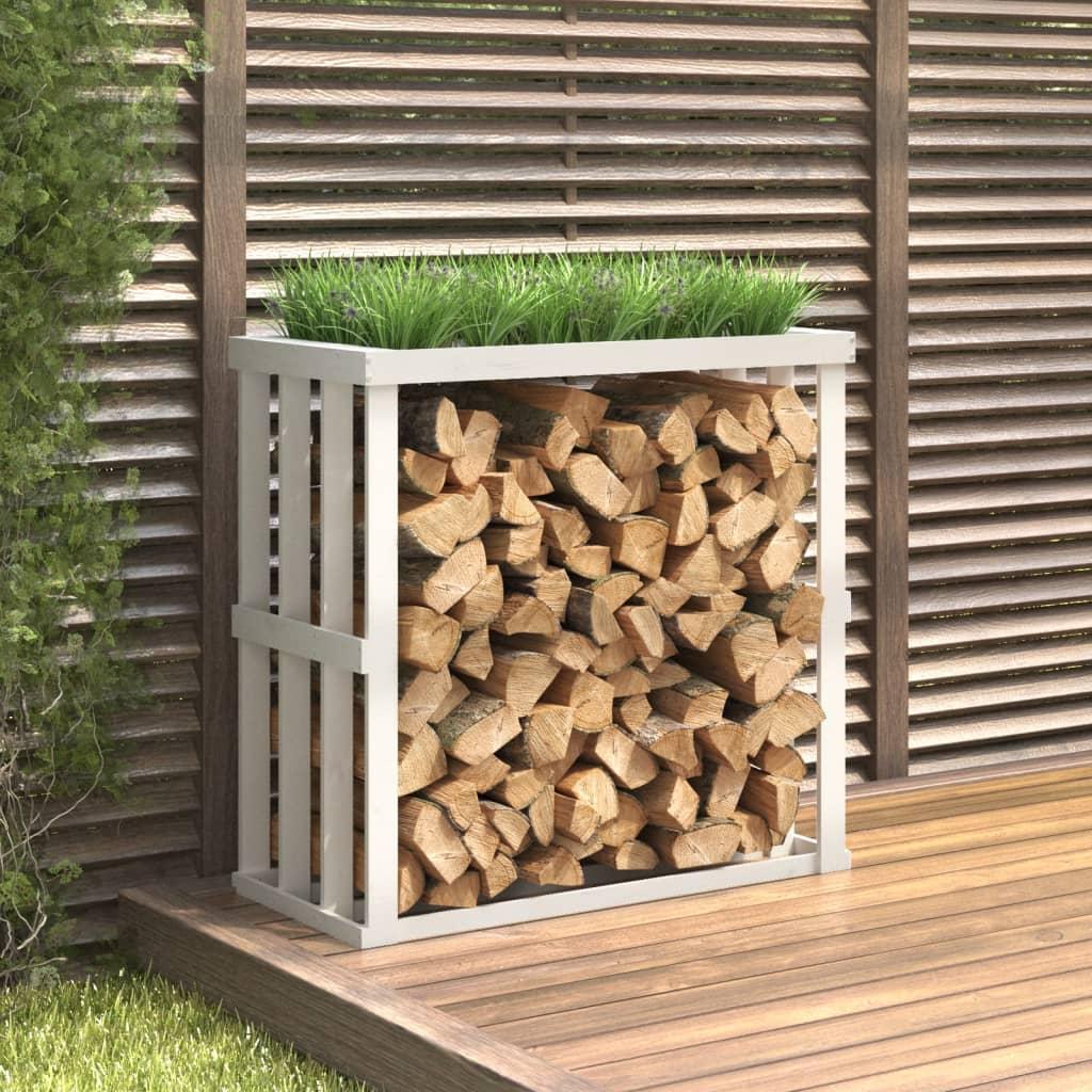 Porte-buches d'exterieur Blanc 108x52x106 cm Bois massif de pin