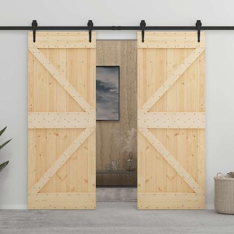 La porte est en bois de pin massif, ce qui la rend extremement stable et durable. Vous pouvez egalement decorer ou peindre sur la porte en bois selon votre gout avec sa surface naturelle. La livraison comprend un kit de quincaillerie de porte coulissante pour une installation facile. L'ensemble de quincaillerie en acier enduit de poudre ajoute a sa robustesse.