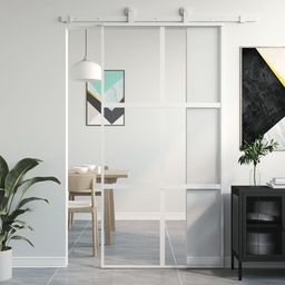 Porte coulissante blanc 102,5x205 cm verre trempe aluminium