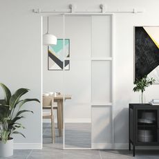 Porte coulissante blanc 76x205 cm verre trempe aluminium