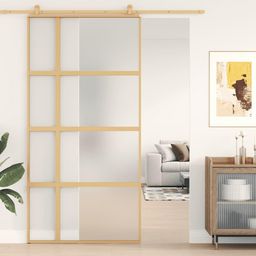 Porte coulissante dore 102,5x205 cm verre ESG depoli aluminium