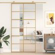 Porte coulissante dore 102,5x205cm verre ESG clair et aluminium