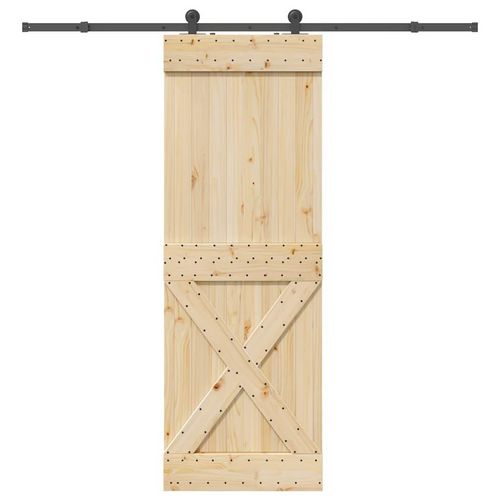 Porte coulissante et kit de quincaillerie 80x210 cm pin massif